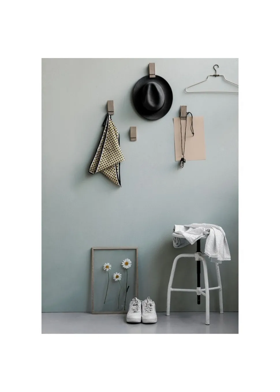 Die Klemme wird von Moebe hergestellt. Die Klemme besteht aus zwei Stücken Eiche und einem einzelnen Gummiband. Pinch kann stehend oder an einem Nagel aufgehängt verwendet werden. Die Pinch-Klemme ist perfekt, um die Momente zu speichern, die Sie nicht vergessen werden.