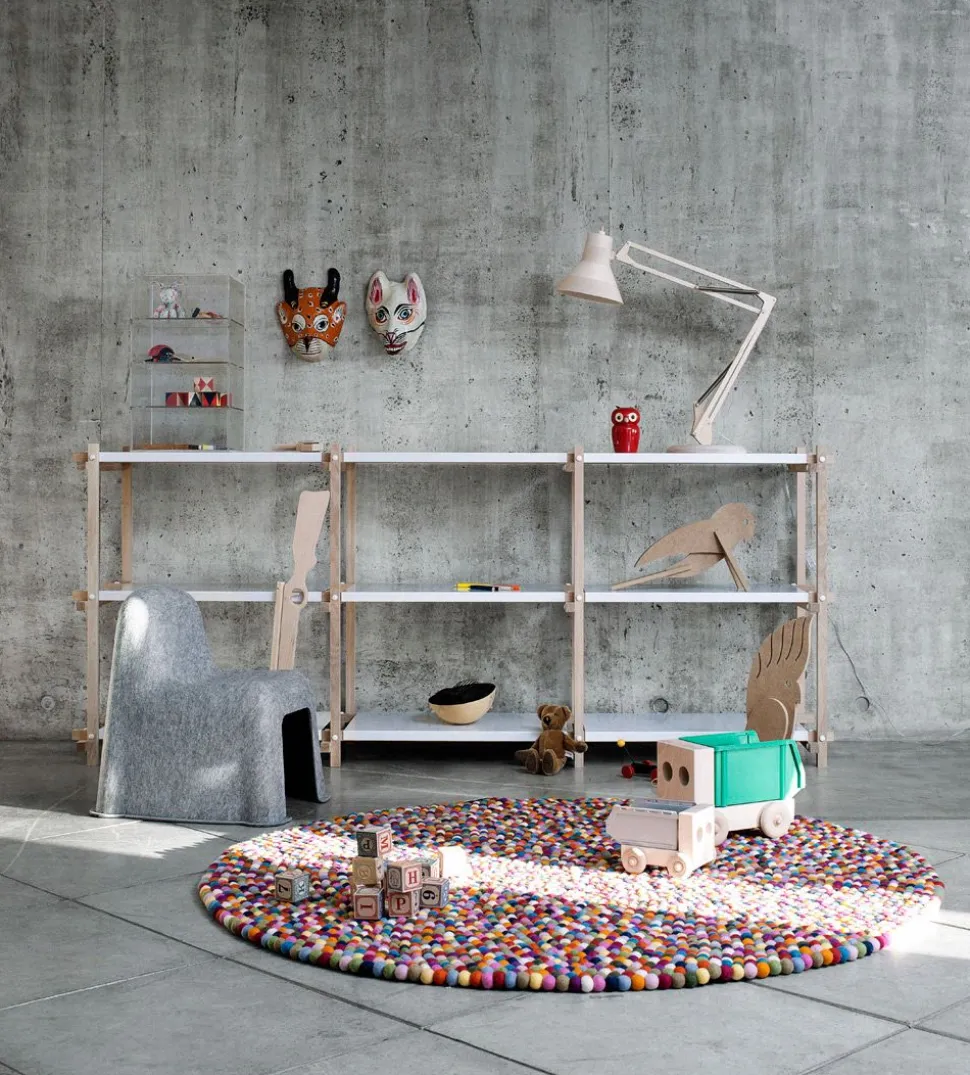 Der ikonische Pinocchio-Teppich von ist nach den bekannten, gleichnamigen Lakritzstücken mit Zuckerüberzug in vielen Farben benannt. Der Teppich wird in Nepal handgefertigt, wo jede einzelne bunte Filzkugel geformt und zusammengenäht wird, um einen wunderschönen Teppich zu bilden. Die vielen Farben und die einzigartige Textur, die der Teppich hat, tragen dazu bei, einen spielerischen Ausdruck in die Wohnung zu bringen.