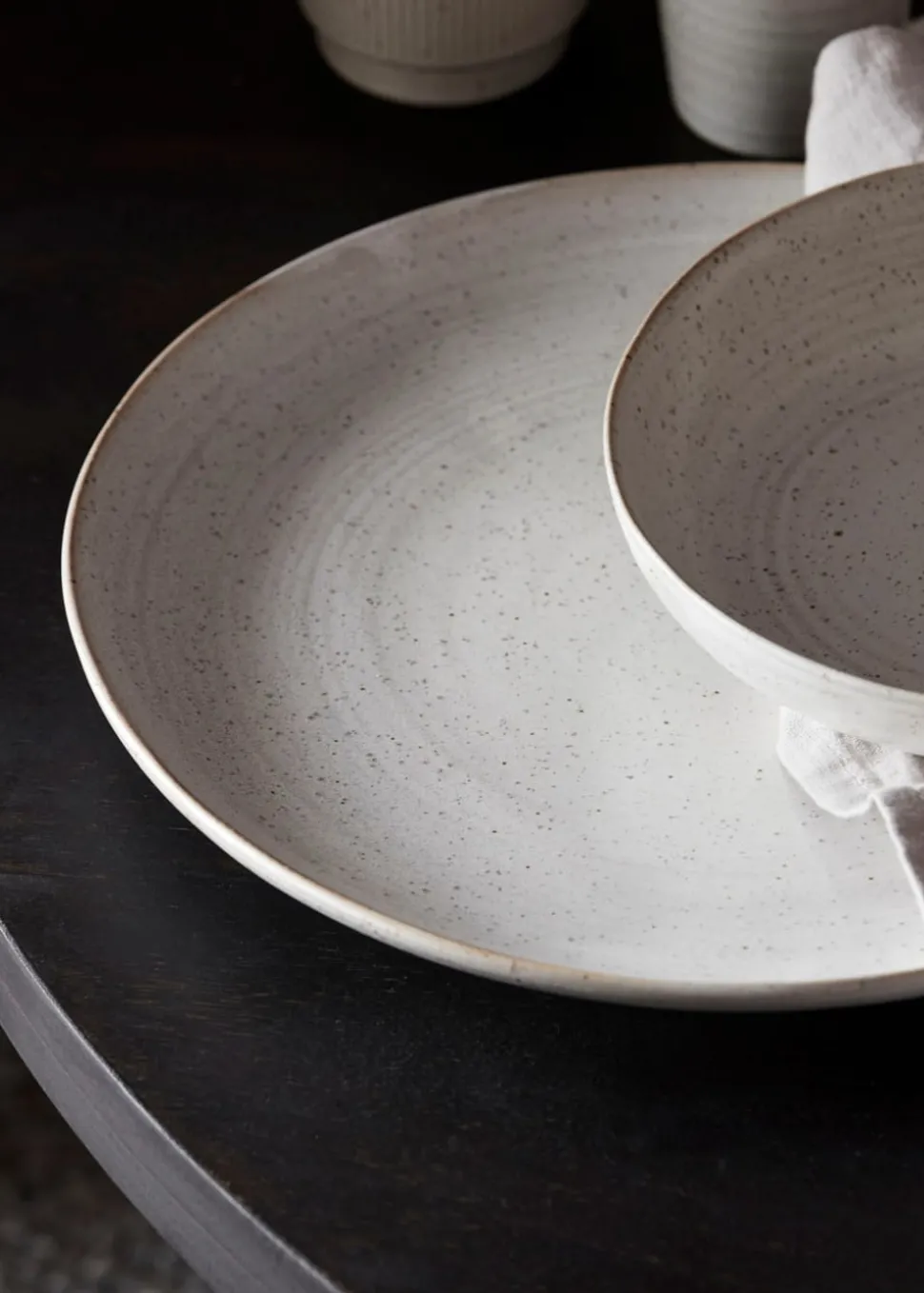 Teller groß: Sie heißt Pion und hat eine rustikale weiß/graue und gesprenkelte Glasur. Dies verleiht dem Teller ein stilvolles Design und Aussehen, das sich perfekt für den täglichen Gebrauch eignet. Der Teller hat eine neutrale Farbe und passt in jede moderne Umgebung.