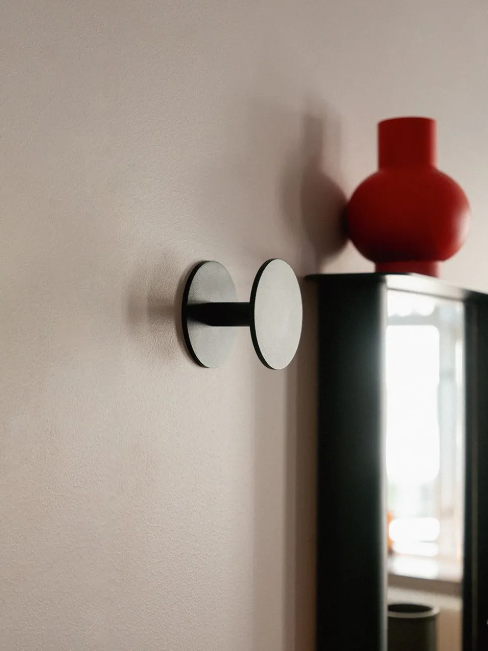 Pipeline Hook, entworfen von Designer Nicholai Wiig-Hansen für , unterstreicht eine geometrische, minimalistische Eleganz und bietet eine stilvolle, praktische Ergänzung für alle Wohnformen. Die wohlwollenden, knopfähnlichen Haken schaffen eine funktionale Aufbewahrungsmöglichkeit und verbinden strenge Schlichtheit in Form und Farbe mit einer nützlichen, alltäglichen Notwendigkeit. Dieses Design ist nicht nur ein Gebrauchsgegenstand, sondern auch eine ästhetische Entscheidung, die die Harmonie von Design und Absicht zelebriert.