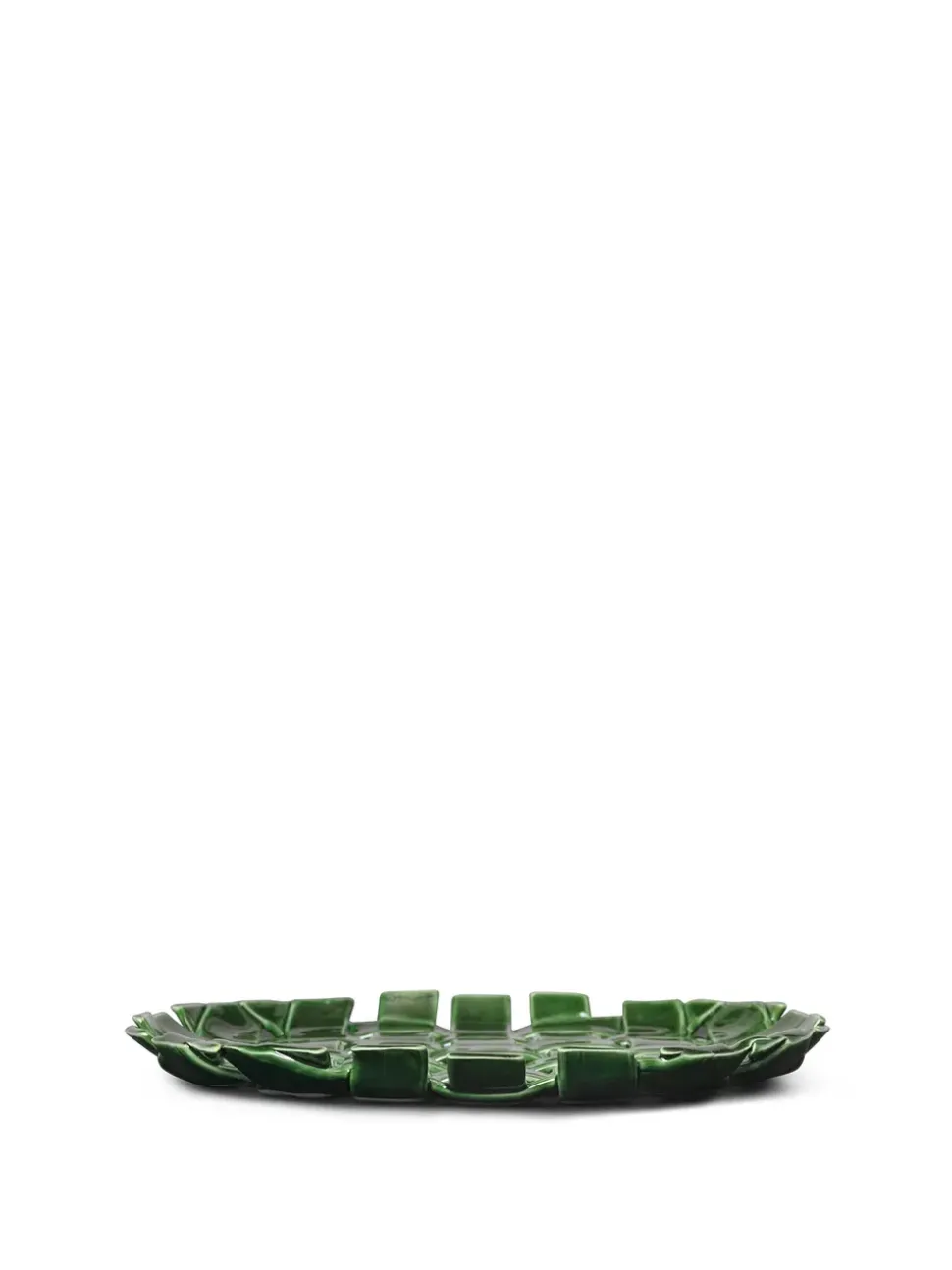 Die Plait Platte von ist ein schönes Beispiel für moderne Handwerkskunst mit einem Hauch von zeitloser Eleganz. Das smaragdgrüne Steingut fängt das Licht mit seiner glänzenden Oberfläche ein, während die geflochtene Struktur ein raffiniertes, skulpturales Aussehen verleiht. Jedes Detail ist sorgfältig ausgearbeitet und macht die Schale zu einer einzigartigen Dekoration.
