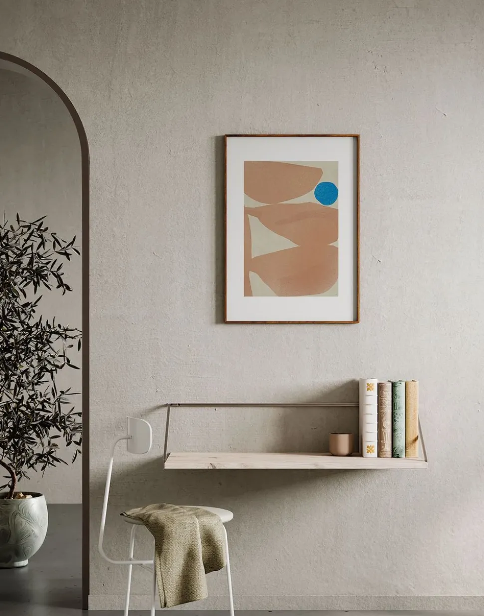 Das Poster kombiniert erdige Farbtöne in einer einzigartigen Kombination, die die kreativen Grundformen hervorhebt. Das Poster passt daher in jede Inneneinrichtung.