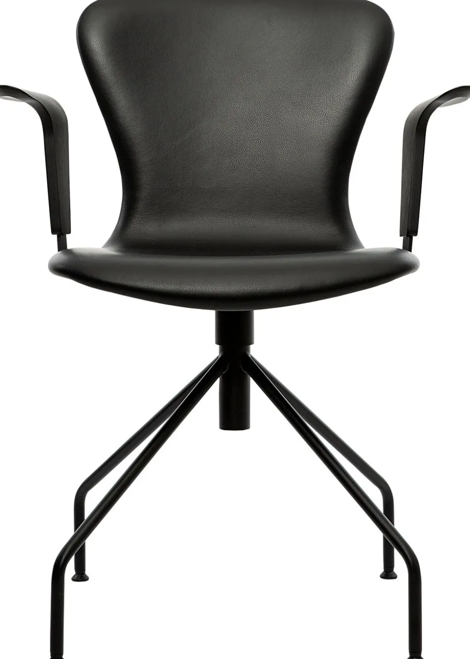 PLAY Arm chair ist ein moderner Stuhl, der von und Claus C. Simonsen. Der Stuhl war als Teil des PLAYtables gedacht, hat sich aber zu einem eigenständigen Möbelstück entwickelt. Der Stuhl ist mit hoher Qualität und Komfort mit großem Design und Handwerkskunst gemacht, gepolstert in Sørensen Leder und mit einem schönen schwarz lackiertem Stahlfuß.
