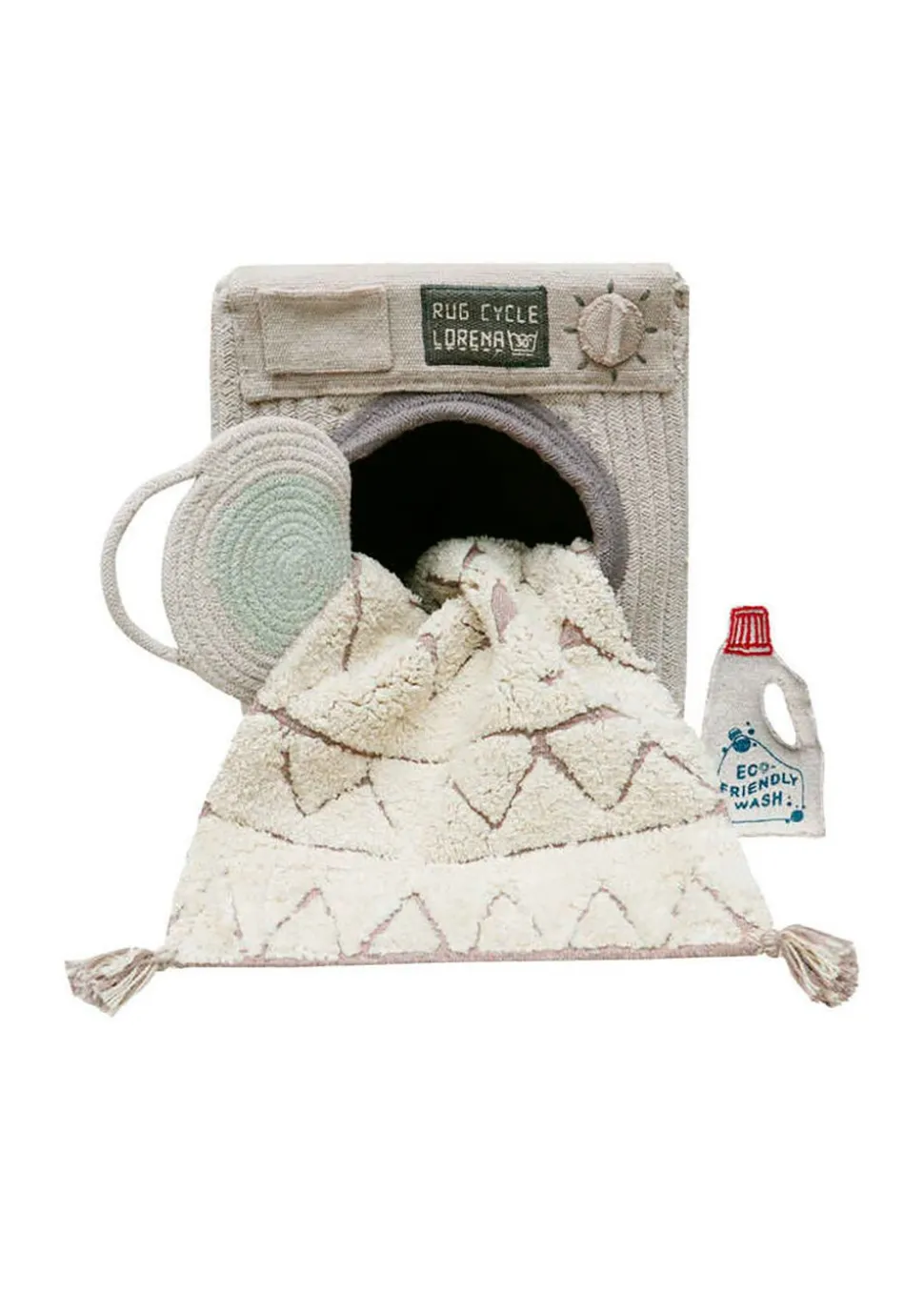 Die Play Basket Waschmaschine von ist eine Spielzeug-Waschmaschine und gehört zur Serie „Little Chefs“. Die Waschmaschine ist multifunktional, denn sie kann für Spiel und Spaß, aber auch als funktionaler Aufbewahrungskorb für das Kinderzimmer verwendet werden. Beim Kauf der Waschmaschine sind ein Mini-Teppich von RugCycled® und eine kleine gefüllte Waschflasche aus Segeltuch enthalten. Ein lustiges und lehrreiches Spiel mit der Waschmaschine und ihrer Wäsche.