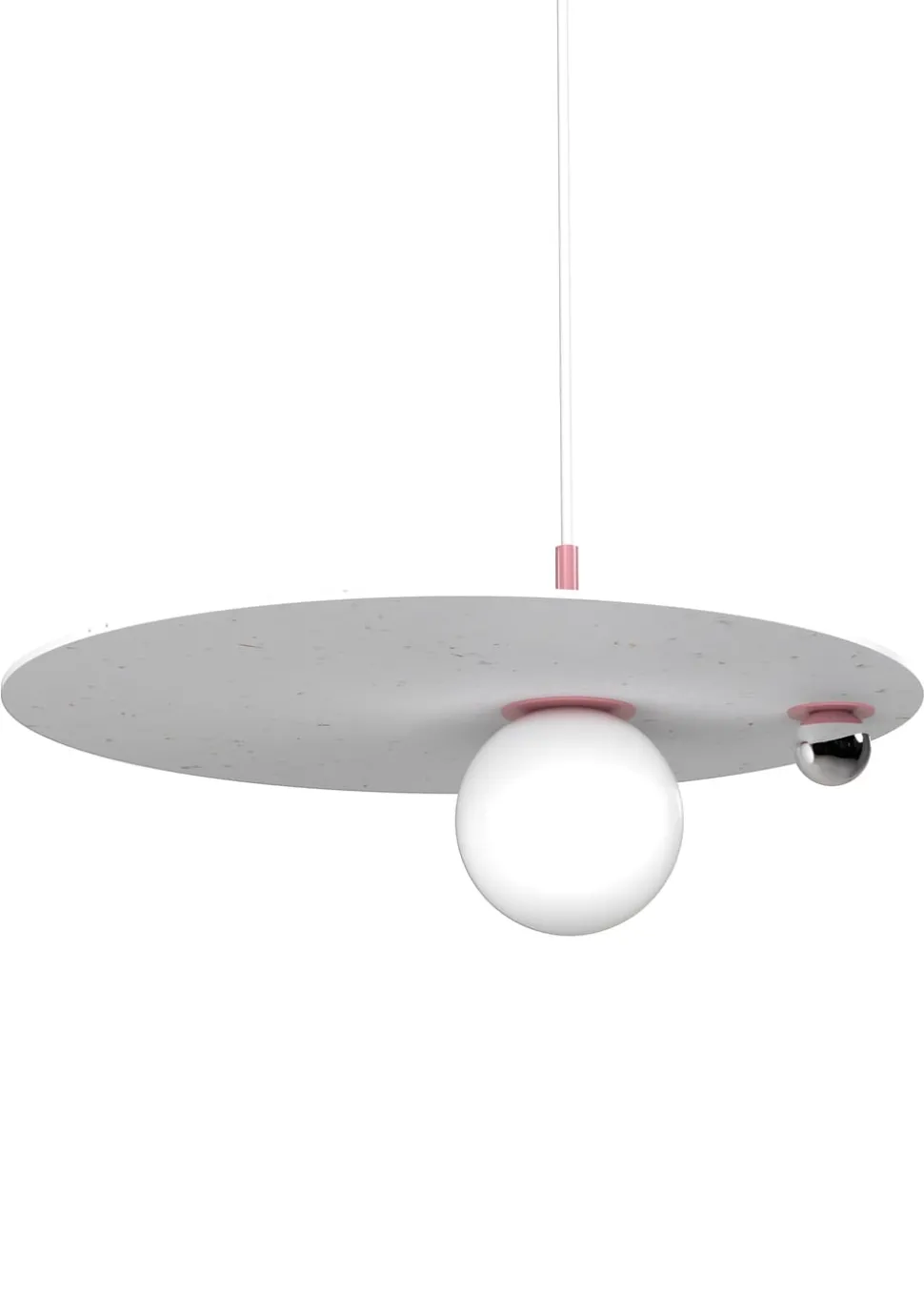 PLUTO BIG Alba White von , entworfen von Louise Hederström, ist eine poetische Pendelleuchte, inspiriert von der feinen Balance des Universums. Mit ihrem eleganten, runden Design und den verantwortlichen Materialien aus recyceltem Kunststoff und pulverbeschichtetem Stahl verleiht die Leuchte jedem Raum einen skulpturalen Ausdruck. Eine schöne Glaskugel vereinigt die Konstruktion, und das geringe Gewicht der Metalldetails vermittelt ein Gefühl von Leichtigkeit und Harmonie.