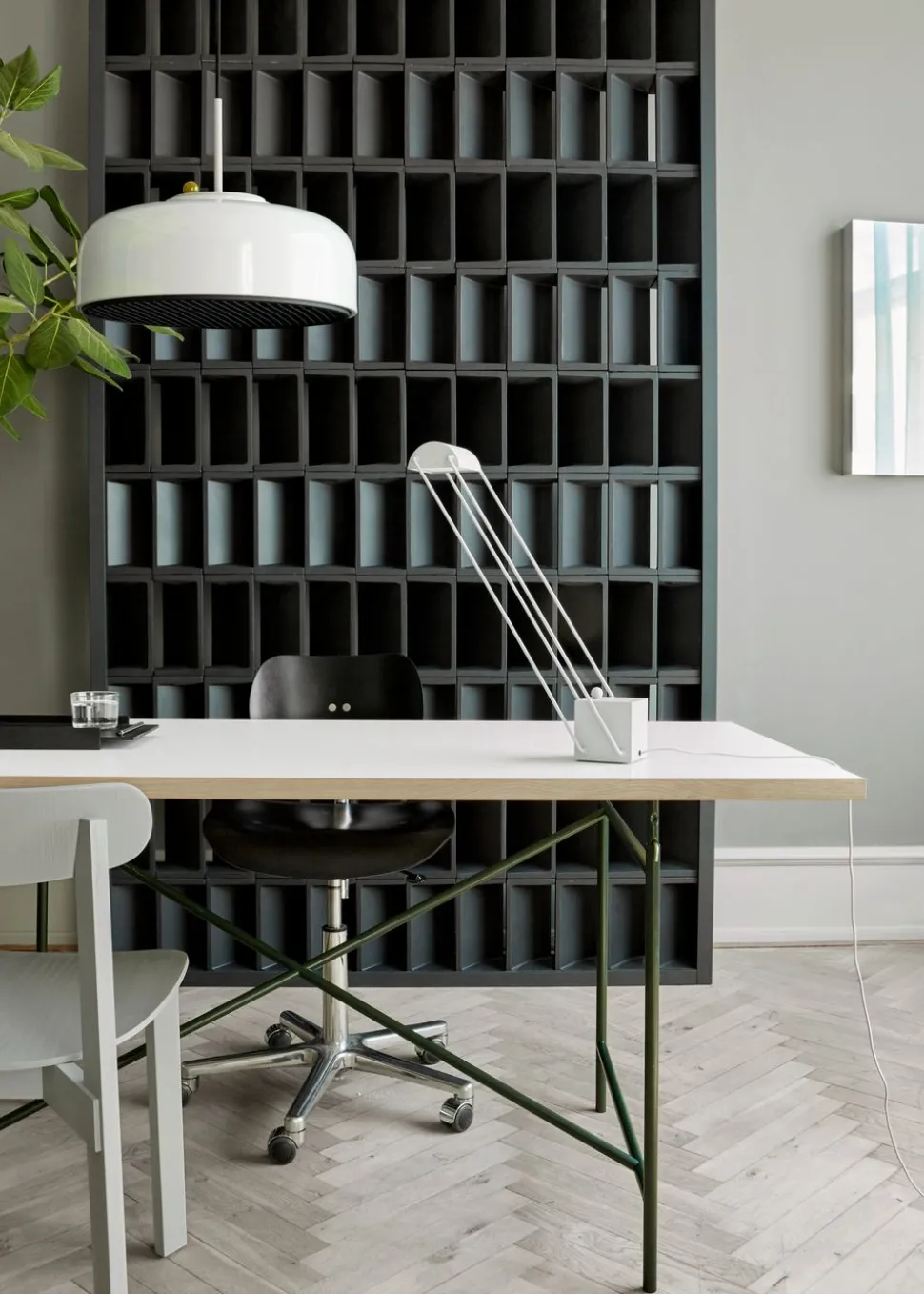 Die PODGY Pendelleuchte von , entworfen von Krøyer-Sætter-Lassen, ist von der Beleuchtungsausrüstung inspiriert, die von Fotografen verwendet wird, um eine präzise und kontrollierte Beleuchtung zu erreichen. Diese Pendelleuchte verbindet klassische skandinavische Designelemente mit einer raffinierten modernen Ästhetik, die sich auf Komposition und Materialität konzentriert, um ein Stück zu schaffen, das sich nahtlos in zeitgenössische Innenräume einfügt. Das Herzstück der PODGY Pendelleuchte ist eine wabenförmige Aluminiumstruktur, die das Licht wunderbar streut und gleichzeitig für eine gerichtete Beleuchtung sorgt. Dieses Designelement, das ursprünglich in Fotostudios verwendet wurde, sorgt für ein weiches, kontrolliertes Licht, das jeden Raum aufwertet. Die Leuchte verfügt außerdem über einen kugelförmigen Dimmer an der Oberseite, mit dem man die Lichtintensität einstellen und das Aussehen der Leuchte verändern kann, was zu einem spielerischen und interaktiven Erlebnis führt.