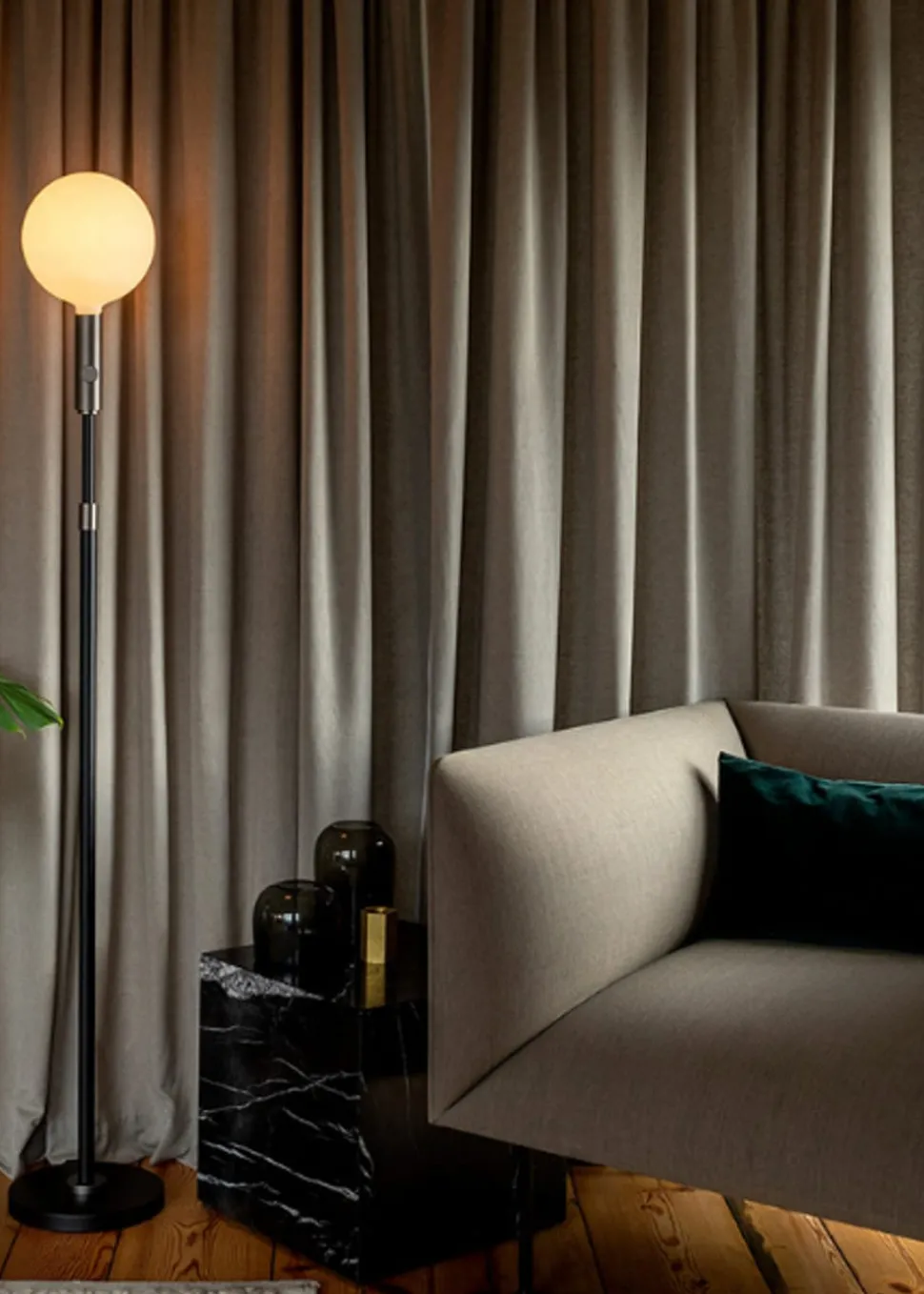 Dekorieren Sie Ihr Zuhause mit diesen beiden schönen Stehlampen. Die Stehlampe ist perfekt in Ihr Dekor, wo sie den Raum mit dem langen Hals der Lampe heben würde. Die Lampe hat einige schöne Details sowohl auf der Basis, den Hals und die Kupplung. Benutzen Sie sie zum Beispiel im Wohnzimmer neben dem Sofa, wo Sie viel Licht bekommen, wenn Sie lesen. Sie können die Lampe auch dann verwenden, wenn Ihnen nicht nach besonders viel Licht zumute ist, denn die Lampe verfügt über einen integrierten Dimmschalter, mit dem Sie das Licht genau so einstellen können, wie Sie es wünschen. Die Poise-Lampen sind komplett mit der speziell angefertigten mundgeblasenen Sphere-V-Lampe.