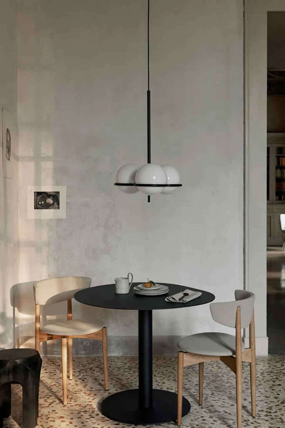 DerPond Dining Table von ist eine moderne und elegante Esstischlösung, die jedem Esszimmer einen Hauch von Stil verleihen wird. Der schlichte und moderne Esstisch ist aus massivem Eichenholz gefertigt und schwarz lackiert. Die abgerundeten Ecken des Tisches verleihen ihm ein weiches und organisches Aussehen, während seine schlanken Beine ihm ein leichtes und luftiges Aussehen verleihen.