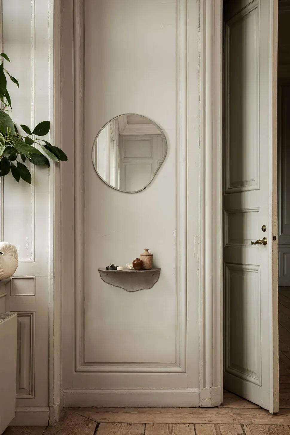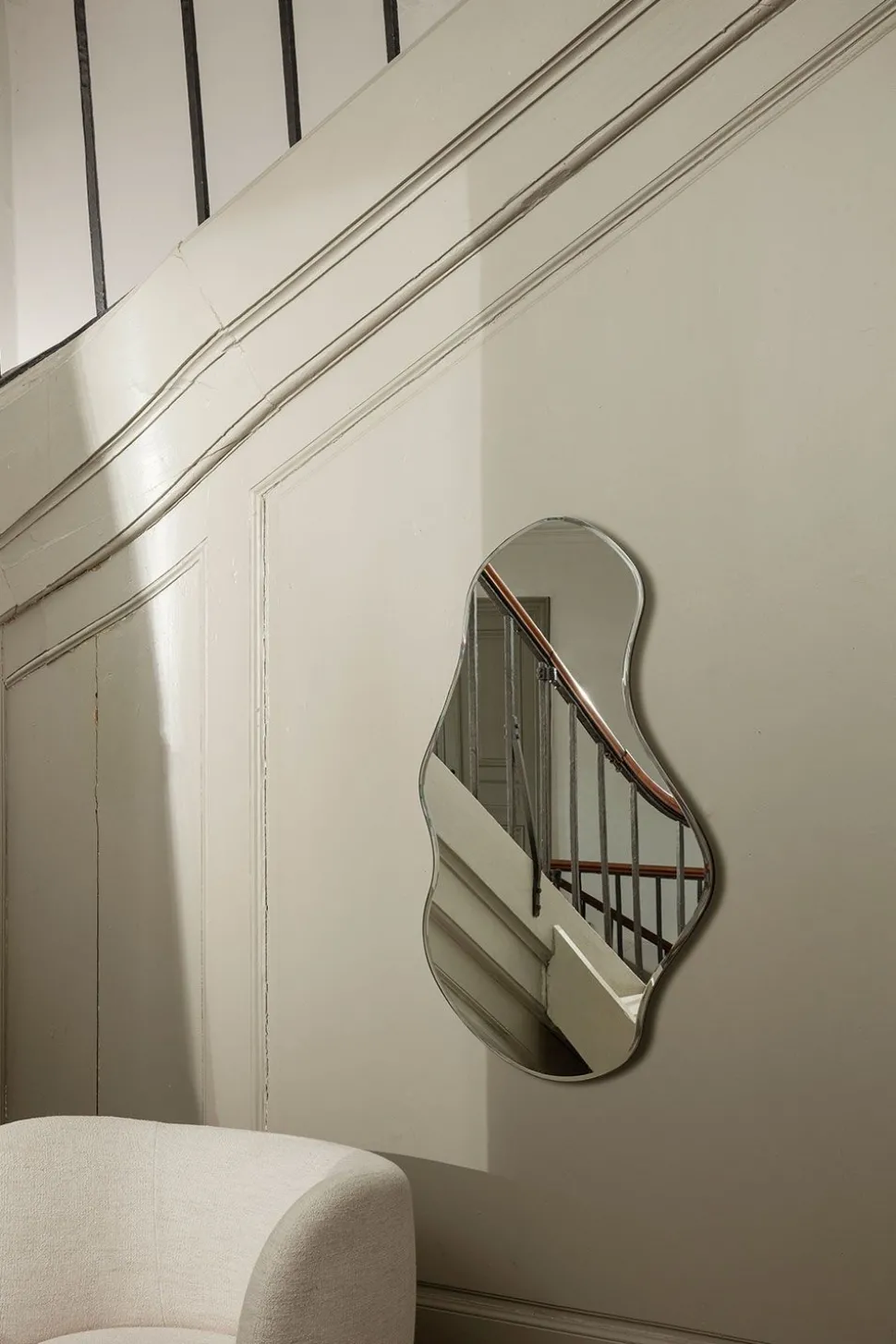 Die weichen, organischen Formen, inspiriert von frei fließendem Wasser, kombiniert mit dem klaren Spiegelglas und dem Metallrahmen, verleihen dem Pond Mirror von einen auffälligen Ausdruck, der sowohl praktisch als auch skulptural ist. Pond Mirror Dark“ ist aus dunkel verchromtem Metall gefertigt, das ein dunkleres Spiegelglas erzeugt. In Kombination mit anderen künstlerischen Wanddekorationen, Gemälden oder Postern fügt der Spiegel ein verspieltes und einzigartiges Design hinzu, das die Wohnung mit einem modernen Twist schmückt.