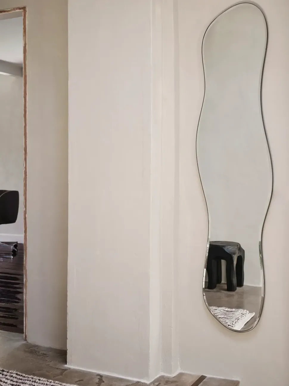 Die weichen, organischen Formen, inspiriert von frei fließendem Wasser, kombiniert mit dem klaren Spiegelglas und dem Metallrahmen, verleihen dem Pond Mirror von einen auffälligen Ausdruck, der sowohl praktisch als auch skulptural ist. Pond Mirror Dark“ ist aus dunkel verchromtem Metall gefertigt, das ein dunkleres Spiegelglas erzeugt. In Kombination mit anderen künstlerischen Wanddekorationen, Gemälden oder Postern fügt der Spiegel ein verspieltes und einzigartiges Design hinzu, das die Wohnung mit einem modernen Twist schmückt.