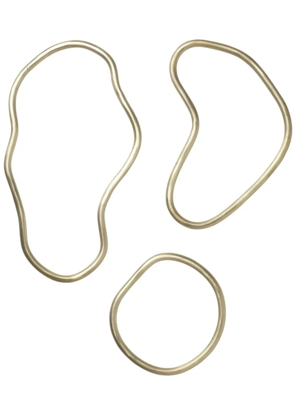 Da sie die organischen Unregelmäßigkeiten widerspiegeln, wenn Wasser in Bewegung ist, kommen die Pond Tischschoner als Set von drei Messingringen, die den Esstisch vor heißen Pfannen und Töpfen schützen. Zusammen bilden sie eine ästhetische Komposition auf dem Tisch, und Sie können sie wahlweise als Dekoration an einem Haken aufhängen, wenn Sie sie nicht benutzen.