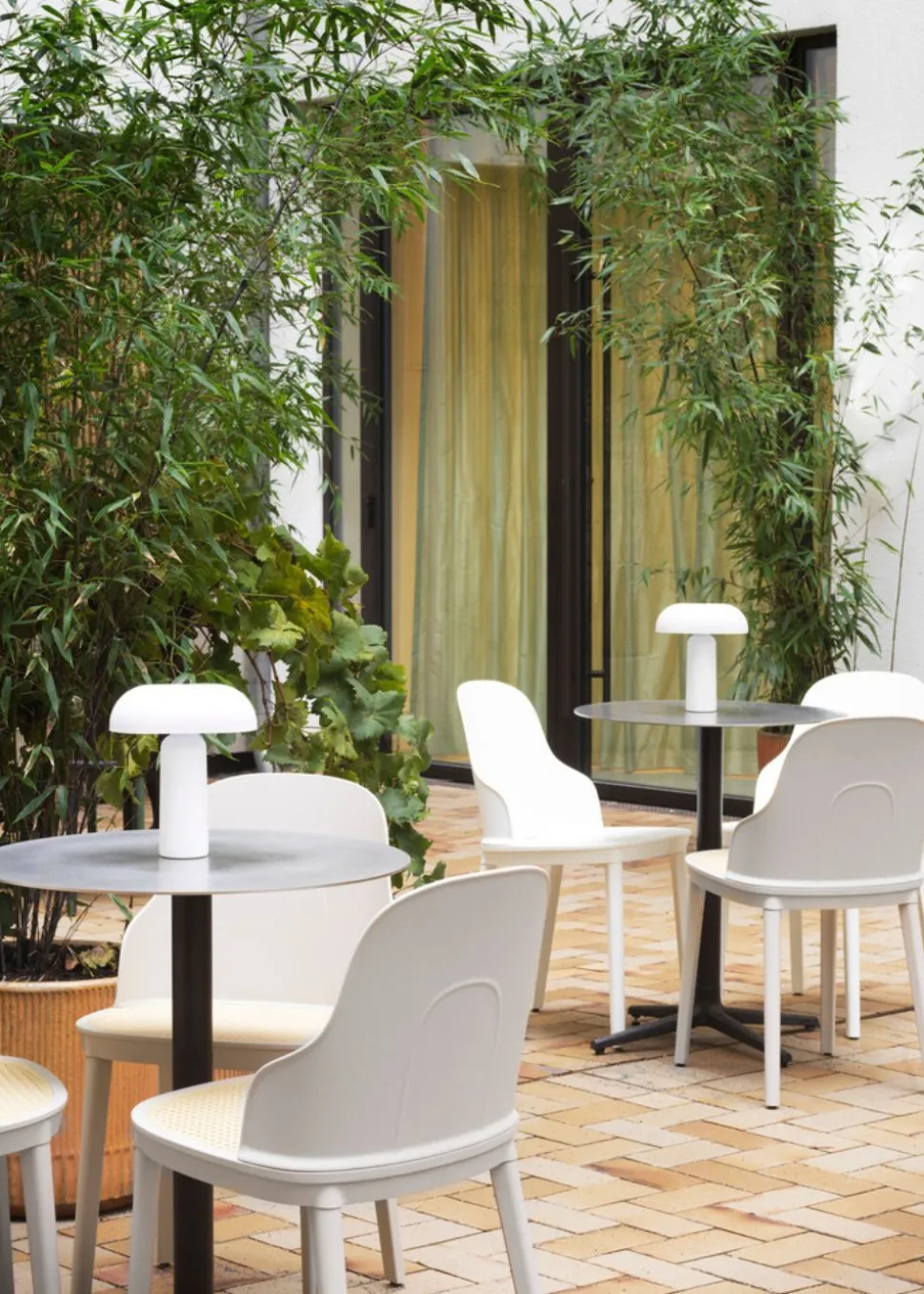 Die Porta Tischleuchte ist eine kabellose, tragbare Leuchte, die sich leicht an verschiedenen Orten in der Wohnung aufstellen und auch in den Garten mitnehmen lässt.