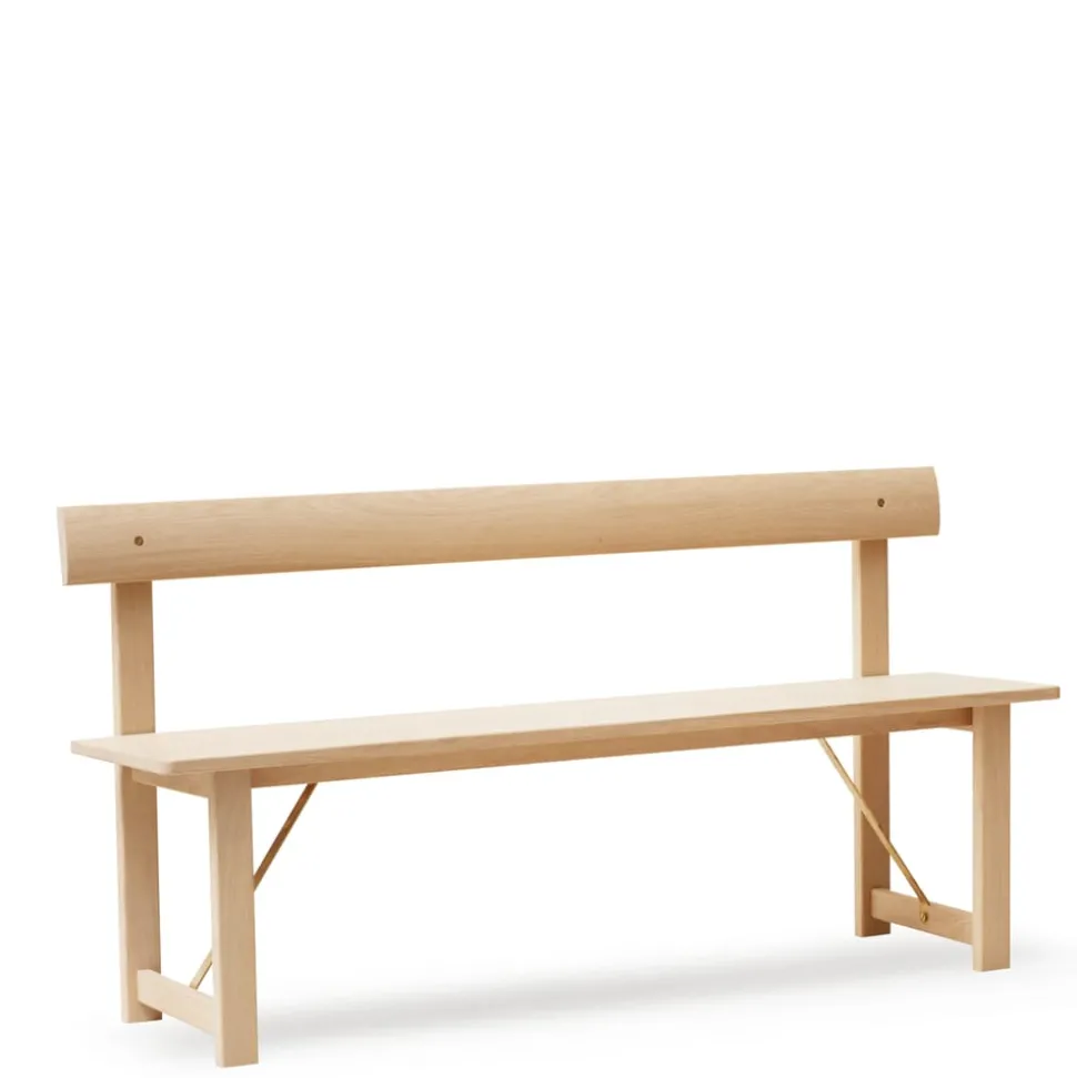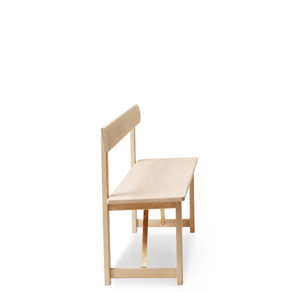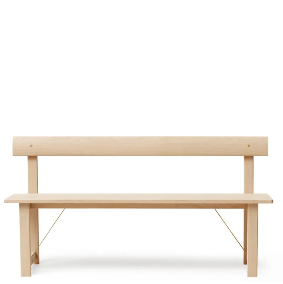 Die Positionsbank hat eine klare Silhouette mit ihren geraden horizontalen und vertikalen Linien. Der Kontrast zur natürlichen, massiven Eiche verleiht der Bank eine interessante Wärme und dennoch einen klaren Ausdruck. Die minimalistische Rückenlehne mit ihrem moderaten Winkel sorgt für zusätzlichen Komfort. Die Messingdetails unten verleihen der Bank einen zusätzlichen Hauch von Handwerkskunst und Raffinesse. Die Wahl eines Lederkissens sorgt für Wärme, Komfort und eine klare Form. Ihre Abmessungen passen natürlich für drei Personen, ganz zu schweigen davon, dass sie an die meisten Esstische passt. Entworfen von Herman Studio.