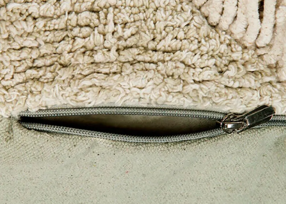 - Material Hergestellt aus 97% Baumwolle, 3% andere Fasern mit einer Innenfüllung aus 100% Polystyrolkügelchen.