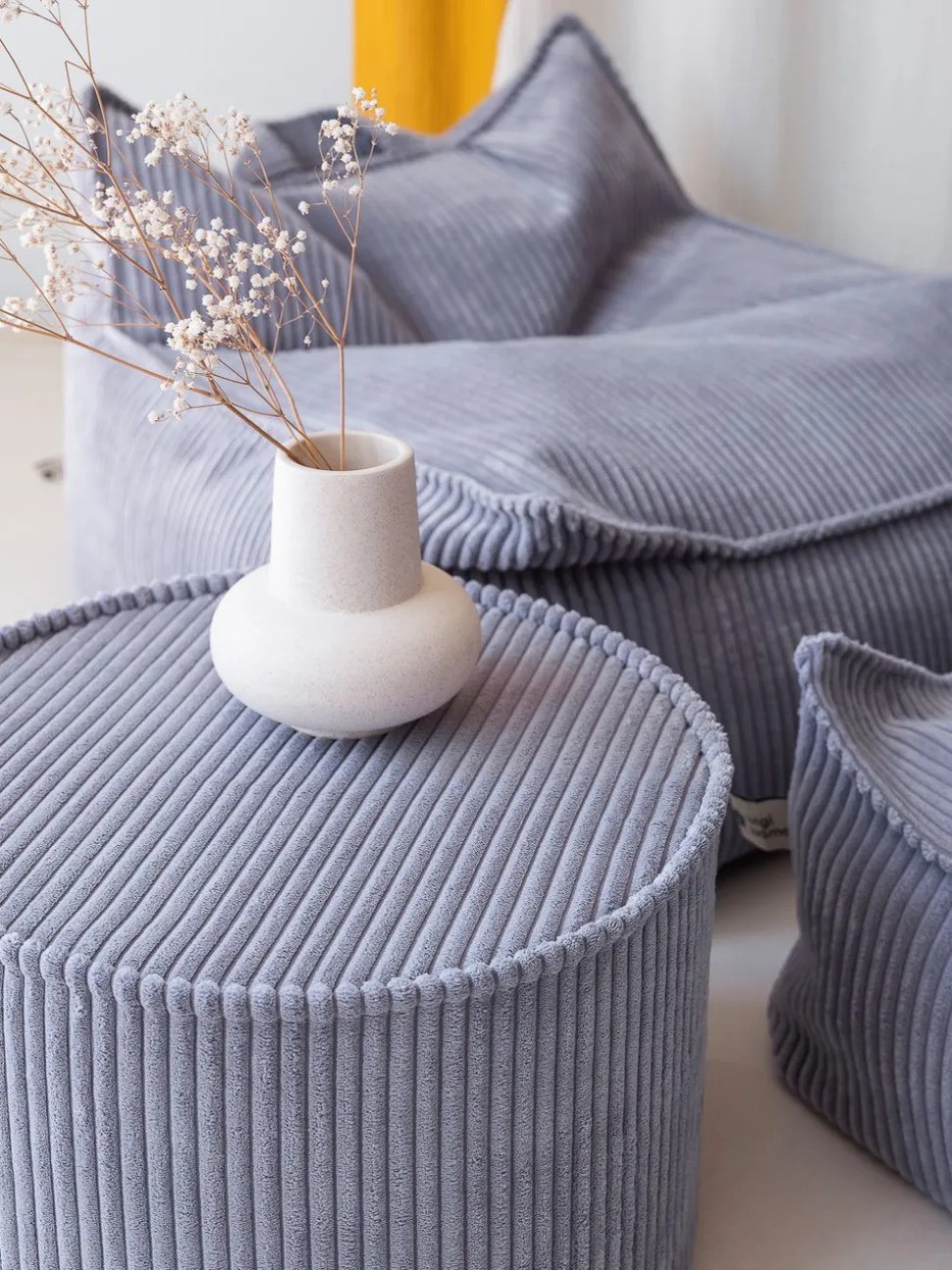Der Pouffe kann als Fußhocker, zusätzliche Sitzgelegenheit oder als Baustein für fantasievolle Spiele verwendet werden. Er kann mit den passenden Sitzsäcken und Loungemöbeln von kombiniert werden, um eine harmonische und gemütliche Umgebung zu schaffen. Fügen Sie weiche Textilien und gedeckte Farben hinzu, um das Gefühl von Ruhe und Geborgenheit in der Umgebung der Kinder zu verstärken. Leicht und praktisch, passt es sich den Bedürfnissen und Aktivitäten der Kinder an. Eine ideale Lösung für Ruhe und Spiel.