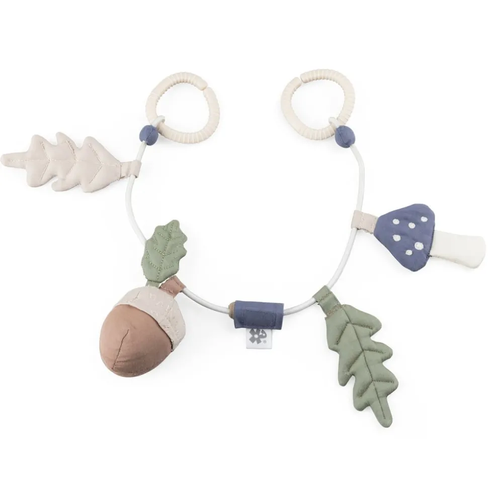 Niedliche Kinderwagenkette mit Baumwollfiguren in leuchtenden Farben, um das Baby während der Fahrt zu unterhalten und den Kinderwagen zu schmücken.
