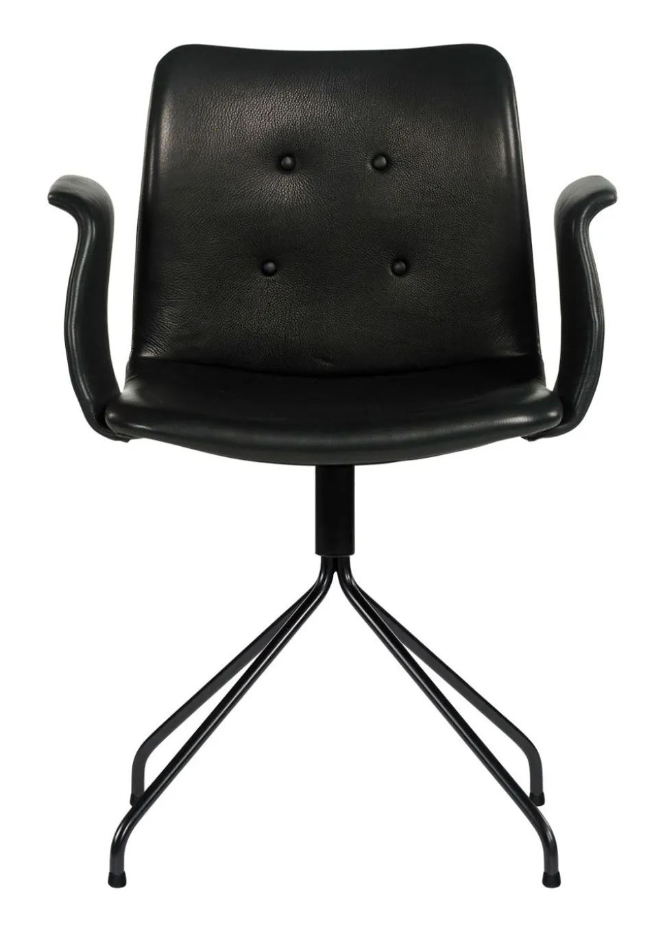Der Primum Stuhl wird von hergestellt. Die Stuhllehne passt sich unabhängig von der Körperform dem Rücken an. Das Gestell ist in Schwarz, Chrom oder Edelstahl erhältlich. Chrom ist auf Anfrage erhältlich. Aufpreis für die Wahl der Knöpfe in anderen Farben. Primum Chair ist auch ohne Armlehnen erhältlich.