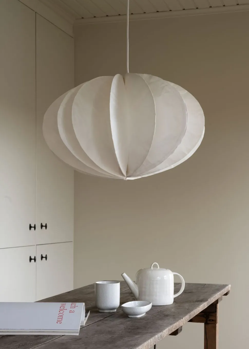 Das Design derPumpkin Pendant ist von einem Meisterwerk der Natur inspiriert – dem Kürbis. Mit ihren organischen Linien und ihrer runden Form ist die Pumpkin Pendelleuchte ein ästhetischer Genuss für das Auge. Jedes Mal, wenn die Pendelleuchte eingeschaltet wird, erwachen die schönen Papierfasern des Papiers zum Leben und verbreiten ein sanftes und angenehmes Licht im Raum.