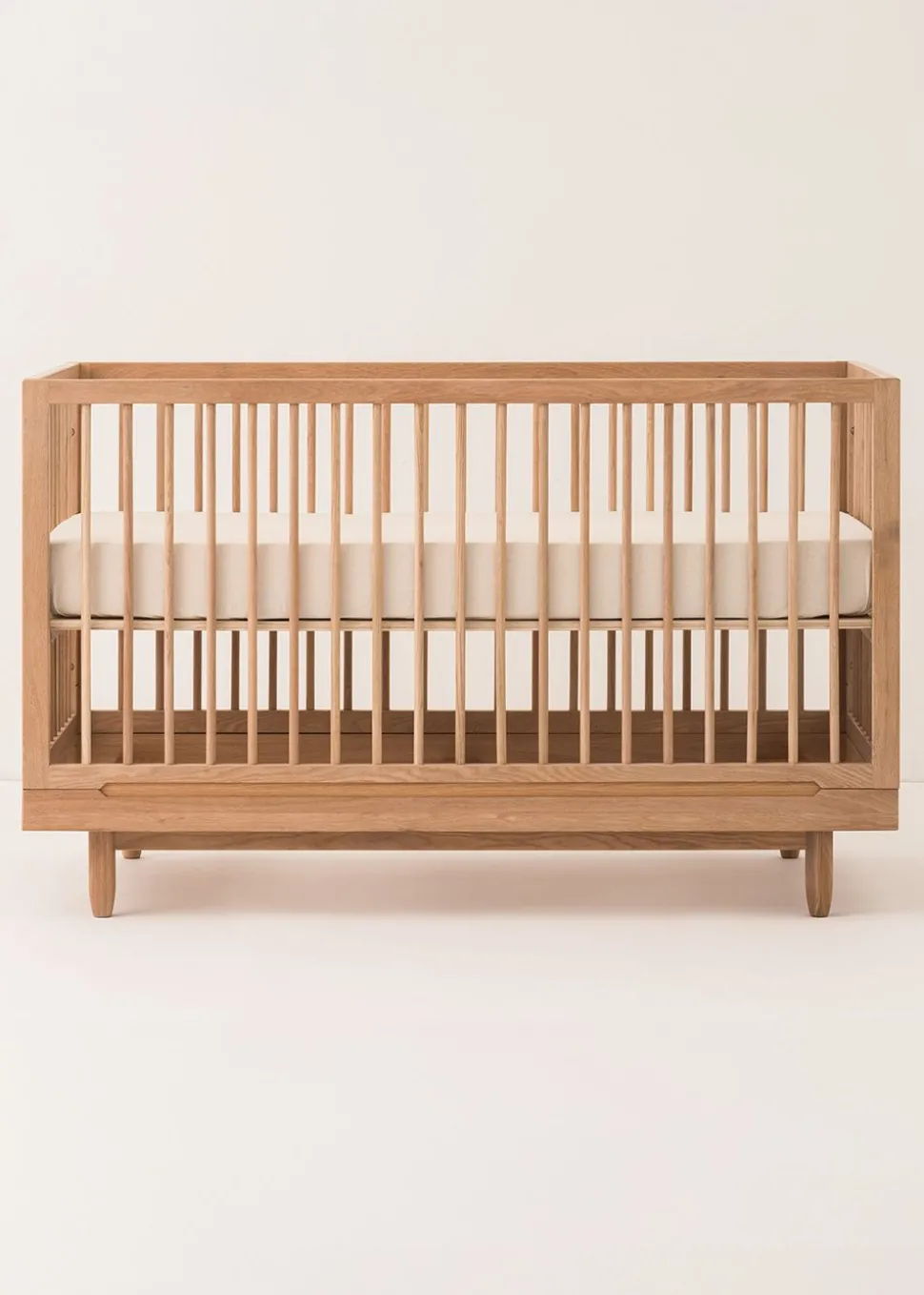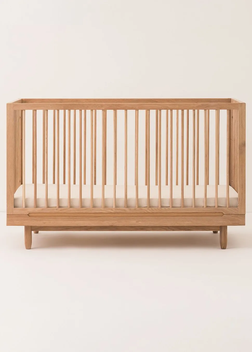 Das Pure Evolving Crib ist das perfekte Kinderbett, um die Entwicklung Ihres Kindes mit Stil zu begleiten. Das Bett ist aus massiver amerikanischer Eiche gefertigt und mit einer eleganten, matten Oberfläche versehen. Es ist mit sorgfältig gearbeiteten Details wie Bleistiftkanten und runden Beinen im Stil der 50er Jahre ausgestattet. Der höhenverstellbare Lattenrost und das gelochte Holzbrett sorgen für Komfort und Sicherheit für Ihr Kind.