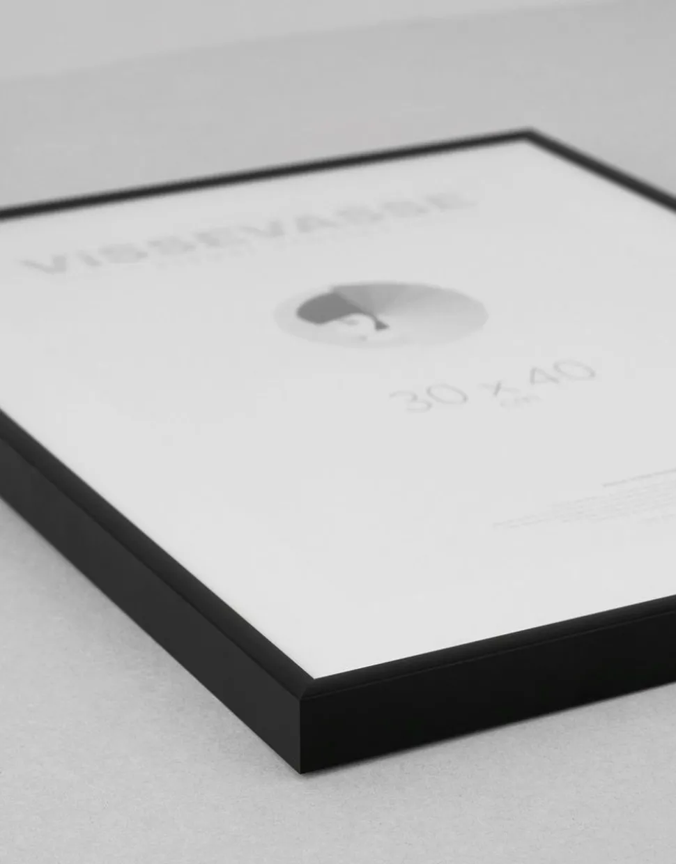 VisseVasses klassische Aluminiumrahmen werden in Italien hergestellt und haben eine mattschwarze Oberfläche, die einen exklusiven und zeitlosen Look verleiht. Die Bilderrahmen sind auch in Eiche massiv erhältlich.