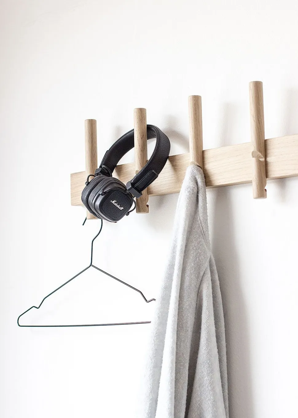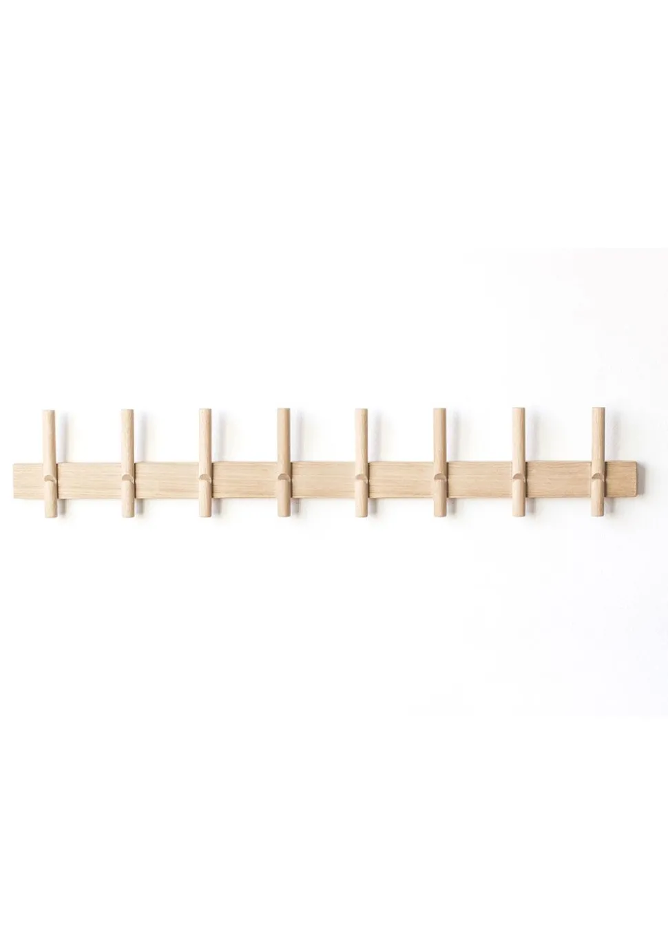 Der Reces – Large von ist ein schönes und optisch ansprechendes Stück Inneneinrichtung, das gleichzeitig als geräumiger Kleiderständer dient. Die vertikalen Kleiderbügel aus Eichenholz mit kleinen Aussparungen ermöglichen es, dass jeder Haken mehrere Kleidungsstücke und andere Gegenstände aufnehmen kann – ohne dass es zu eng oder unübersichtlich wird.