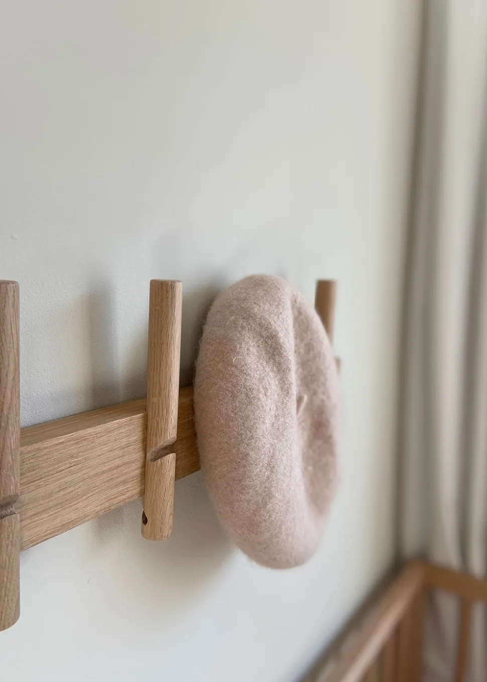 Reces – Small von ist ein schöner und optisch ansprechender Kleiderständer. Die vertikalen Kleiderbügel aus Eichenholz mit kleinen Aussparungen ermöglichen es, dass jeder Haken mehrere Kleidungsstücke und andere Gegenstände aufnehmen kann – ohne dass es zu eng oder unübersichtlich wird.