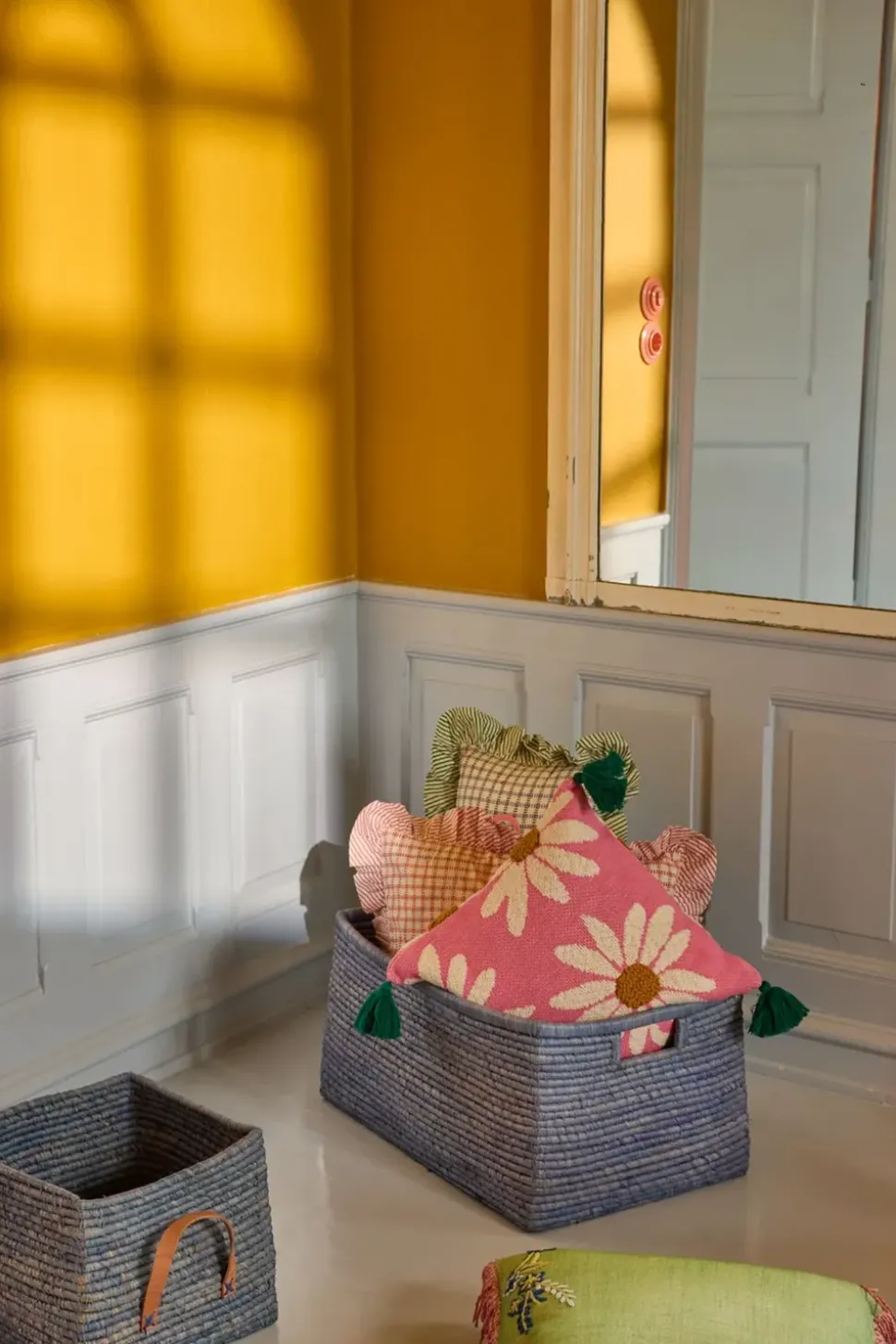 Den ekstra store og lange rektangulære raffiabasket fra er både smuk og funktionel. Fremstillet af naturlige raffiafibre, bringer den et strejf af tropisk charme ind i ethvert børneværelse. Denne rummelige kurv er perfekt til at opbevare legetøj, bøger eller tøj og hjælper med at holde orden på en stilfuld måde.
