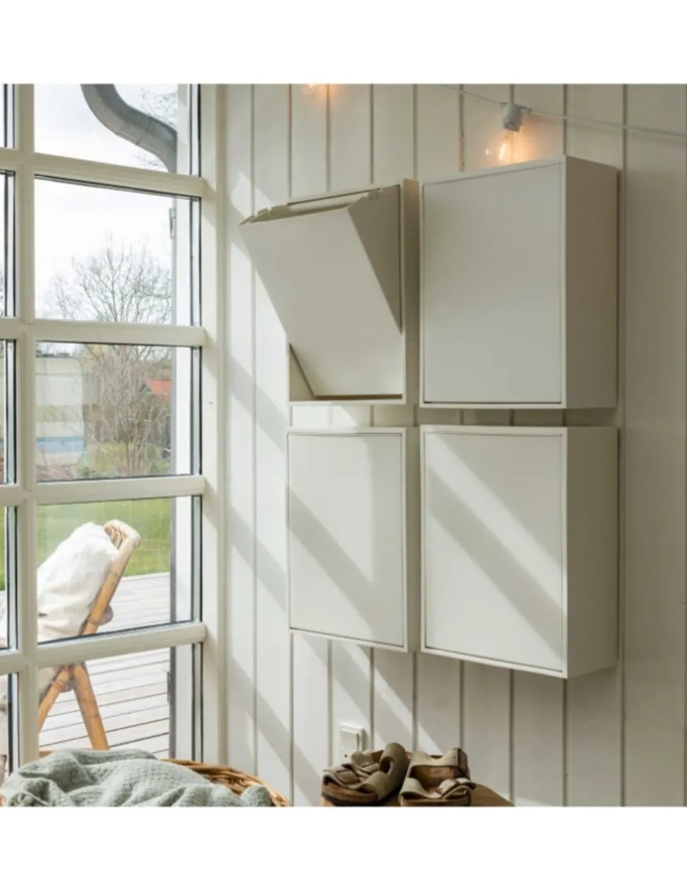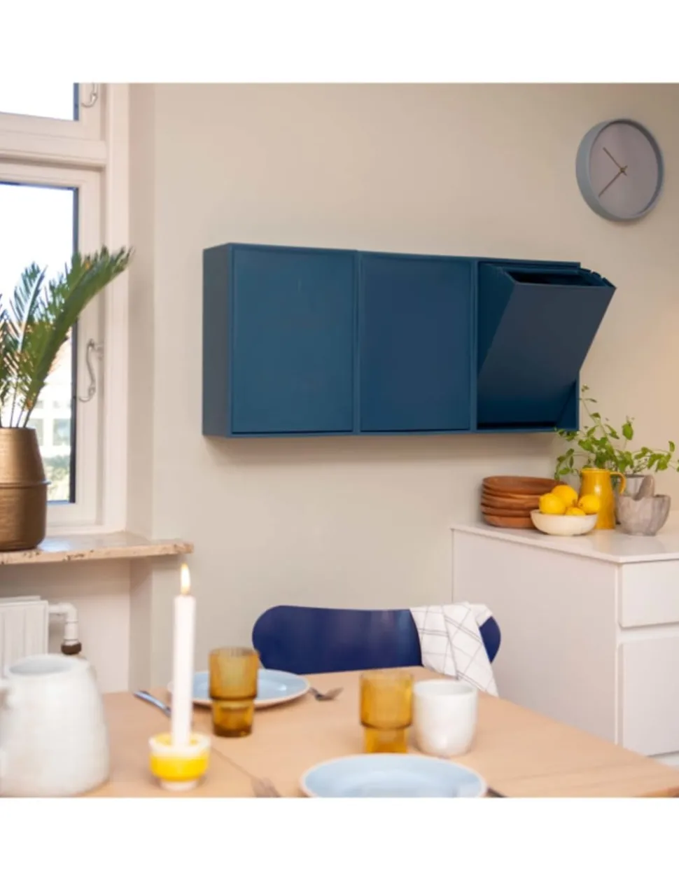 Die Abfalleimer können nach Belieben aufgehängt und kombiniert werden. Sie werden aus recyceltem Kunststoff hergestellt und sind somit verantwortlich. Wenn die Boxen nicht mehr gebraucht werden, können sie ebenfalls recycelt werden, da sie aus recyceltem Kunststoff hergestellt sind. Daher kann es zu leichten Abweichungen und kleinen Punkten auf der Oberfläche der Boxen kommen. Die Boxen sind ideal, wenn Sie keinen Platz unter Ihrem Waschbecken haben oder einfach nur eine bessere Zugänglichkeit wünschen. Außerdem sind die Behälter auch an sich schön, und wenn man über den Tellerrand hinausschaut, kann man die Behälter auch für mehr als nur die Mülltrennung verwenden.
