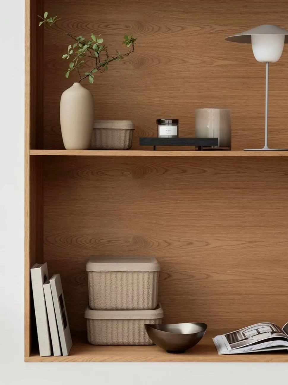 Die stapelbaren Boxen sind im Zweierset erhältlich und eignen sich perfekt für die Organisation und Ordnung im Haus. Die drei verfügbaren Größen bieten Flexibilität und ihr dezenter Look macht es einfach, die Redo Moulded Paper Pulp Boxes – Set of 2 mit anderen Elementen zu integrieren, egal ob im Büro, im Wohnzimmer oder im Schlafzimmer. Kombinieren Sie sie mit natürlichen Materialien, um ihr erdiges und modernes Aussehen zu unterstreichen.