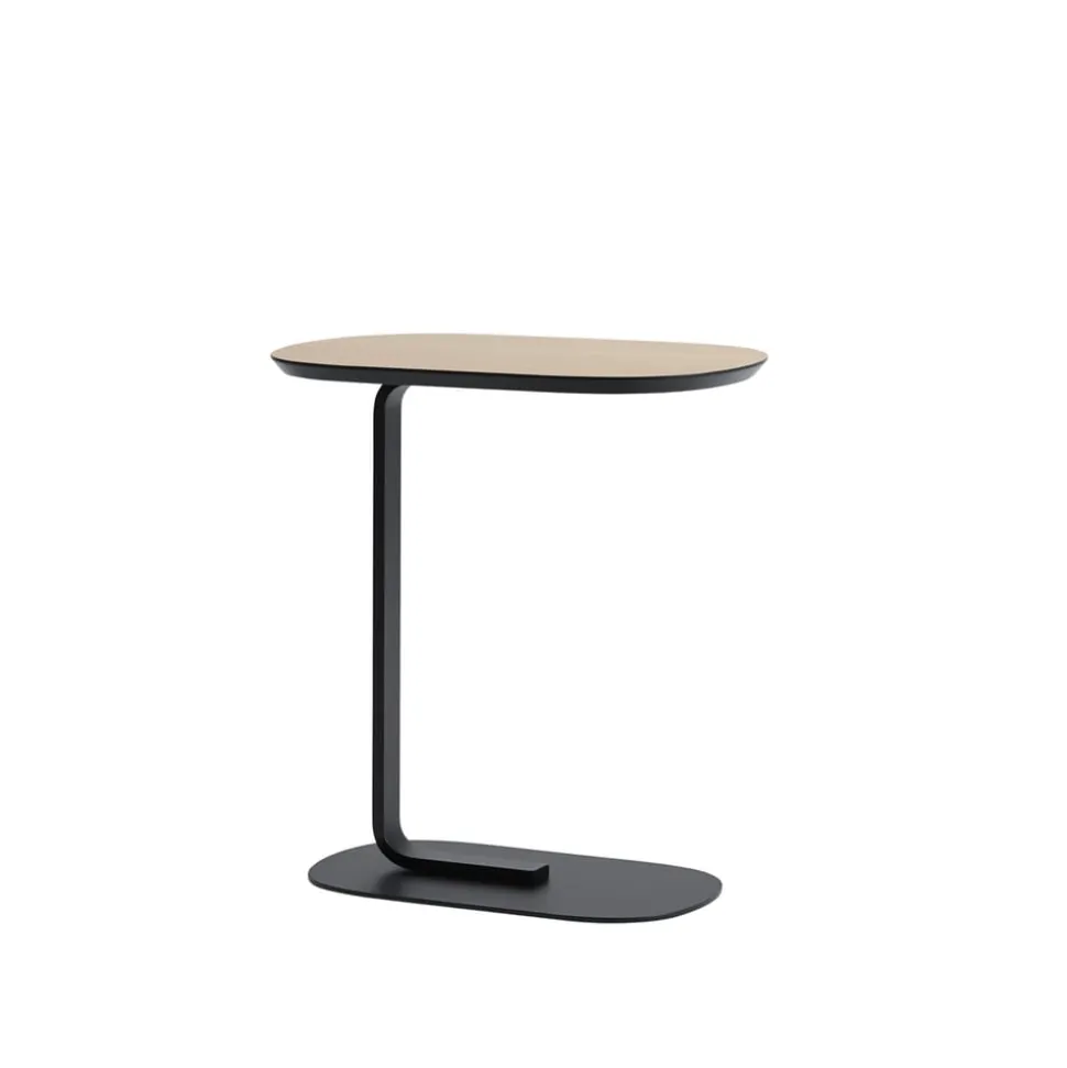 Der elegante Relate Beistelltisch wurde vom Designstudio Big-Game entworfen. Die Tischplatte ist aus Eiche/Laminat und die Beine sind aus pulverbeschichtetem Stahl gefertigt. Der moderne Beistelltisch ist durch ein grafisches Bein verbunden, das dem Tisch einen eleganten und modernen Look verleiht. Der Relate Beistelltisch kann bis zum Sofa hochgezogen werden, um als Schreibtisch zu dienen, oder er kann in jedem Raum aufgestellt werden, um verschiedene Gegenstände aufzubewahren.