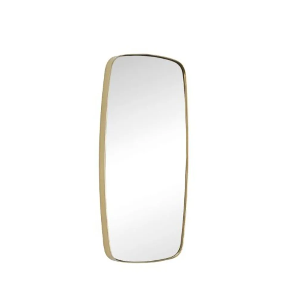 Goldener Wandspiegel von . Stellen Sie den Spiegel ins Schlafzimmer, Wohnzimmer, in die Toilette oder wo immer Sie einen schönen Spiegel brauchen. Der goldene Rahmen des Spiegels verleiht ihm einen eleganten Vintage-Look. Der Retro-Wandspiegel ist aus Eisen und Spiegelglas gefertigt.
