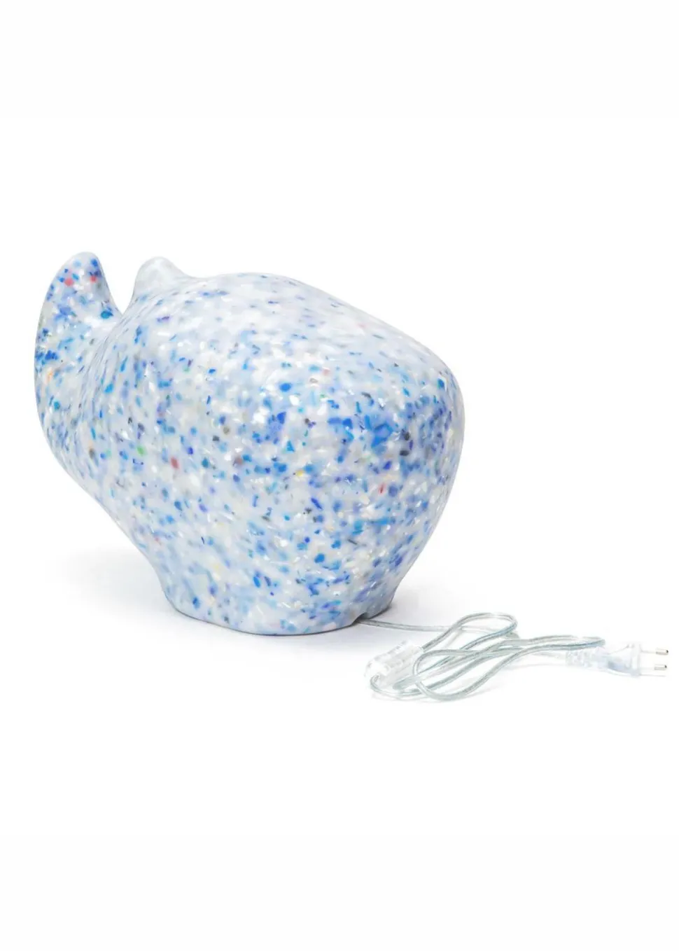 Die Kinderlampe besteht zu 100% aus recyceltem Kunststoff, was ihr ihr charakteristisches Aussehen verleiht. Durch das spezielle Herstellungsverfahren ist jedes Produkt ein Unikat. Durch die glatte Oberfläche des Materials ist sie leicht zu reinigen und zu pflegen. Die Lampe kann sowohl im Innen- als auch im Außenbereich verwendet werden.
