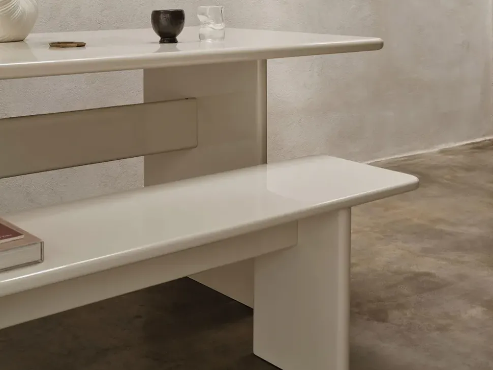 Mit ihrem minimalistischen Look passt die Rink-Bank perfekt in skandinavische Interieurs. Sie lässt sich stilvoll mit der großen Auswahl an Textilien oder Vasen in Naturtönen von kombinieren und schafft so eine stimmige und anspruchsvolle Einrichtung. Sie dient sowohl als Sitzgelegenheit als auch als Plattform für die Präsentation persönlicher Gegenstände.