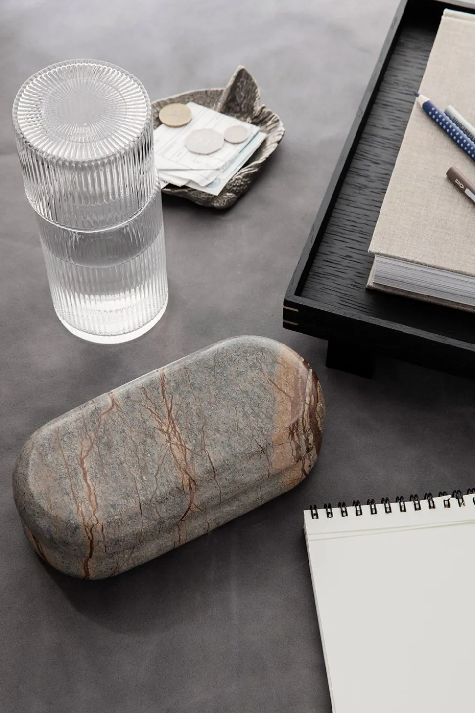 Das Karaffen-Set Ripple von zeichnet sich durch seine elegante gerippte Oberfläche aus, die dem Glas einen raffinierten und auffälligen Look verleiht. Das Set mit einer Karaffe und einem Deckel, der als Glas dient, ist die perfekte Ergänzung für das Büro oder das Schlafzimmer. Das Set hat das gleiche Design wie der Rest der Ripple-Reihe und kann sowohl mit den klassischen Wassergläsern als auch mit dem Ripple Low verwendet werden, das zum Einzelglas des Sets passt.