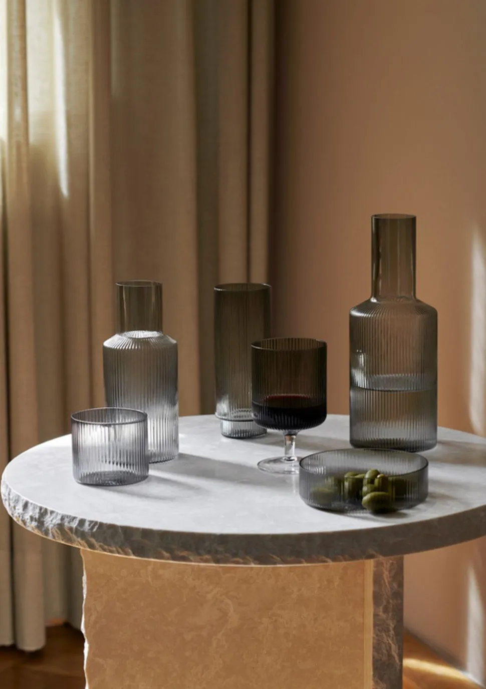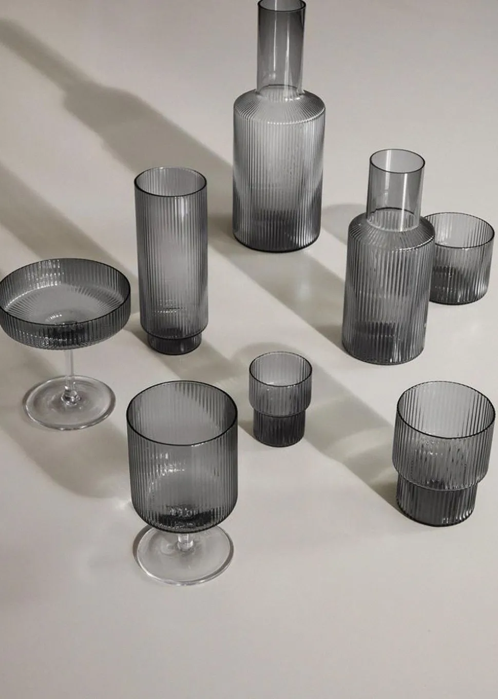 Wunderschöne Champange-Gläser der eleganten Ripple-Serie, in der neuen beliebten „Smoked“-Oberfläche und mit einer femininen Rippenstruktur, die dem Tisch einen raffinierten und einzigartigen Look verleiht, wenn das Licht im Getränk und auf dem Tisch schön reflektiert wird. Verwenden Sie die Champange-Brille mit dem Rest der Ripple-Glas-Serie oder kombinieren Sie sie mit einer schönen keramischen Dinnerwear für einen auffälligen und verspielten Tisch.