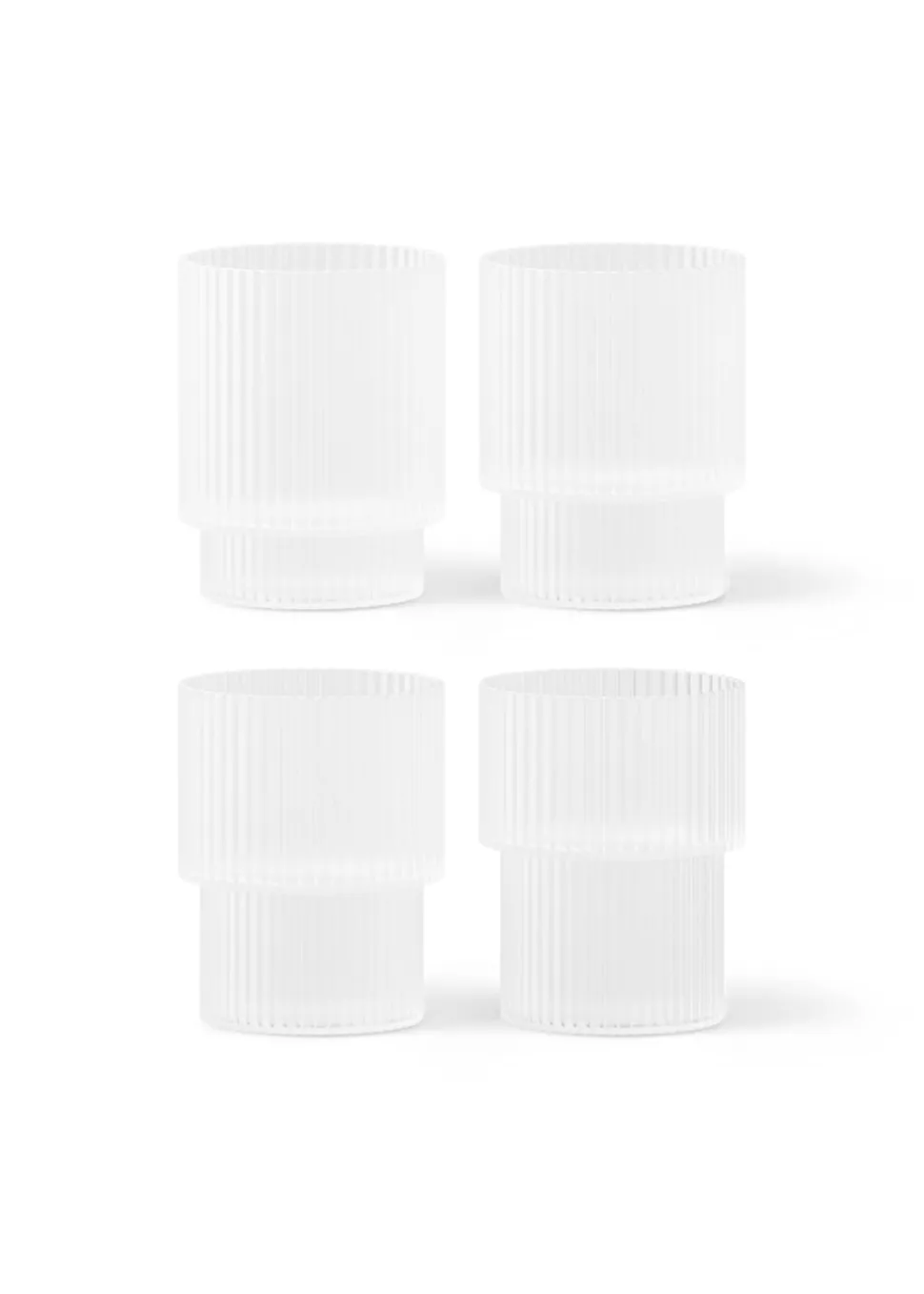 Die Serie Ripple von zeichnet sich durch ihre elegante gerippte Oberfläche aus, die dem Glas einen raffinierten und auffälligen Look verleiht. Die mundgeblasenen Trinkgläser sind in vier verschiedenen geometrischen Formen gehalten, von denen jede ihr eigenes Design hat und die in der Kombination auf dem gedeckten Tisch einen lebendigen und dynamischen Look ergeben. Ob Sie Ihre Ripple-Gläser mit dem Rest der Ripple-Reihe kombinieren oder mit anderen Zusammenstellungen experimentieren, die Gläser werden Ihren Getränken einen stilvollen Touch verleihen.