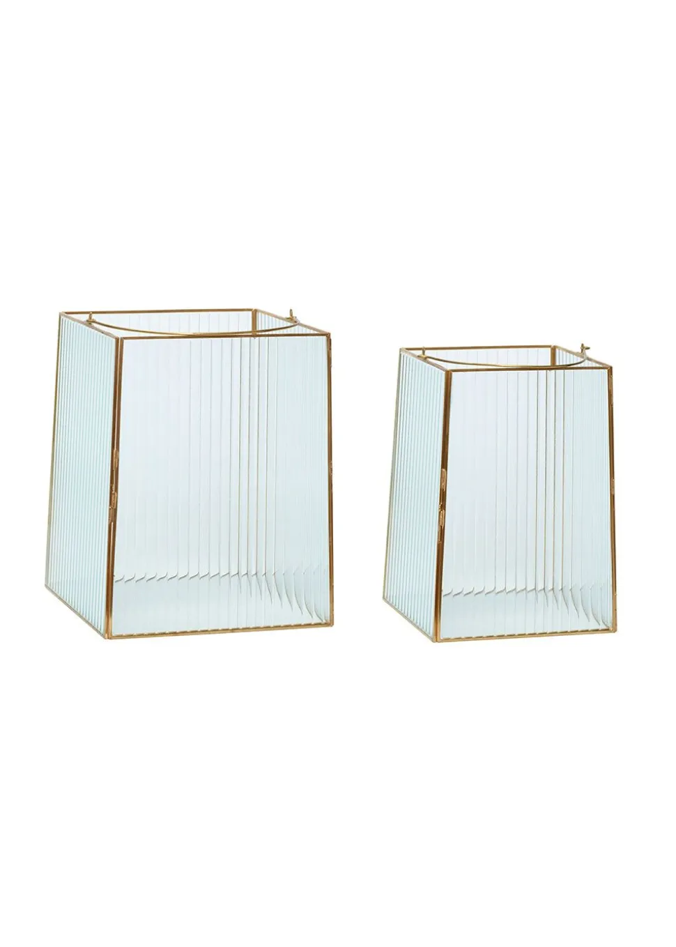 DieLaterne Ripple Clear/Brass (2er-Set) von ist ein wunderschönes Set, das klares Glas mit einem eleganten Messing-Finish vereint, das das Licht wunderschön einrahmt. Jedes Windlicht besteht aus Glas und Eisen, wobei das subtile Ripple-Muster ein sanftes Spiel mit den Lichtreflexen erzeugt. Die Kombination aus klaren Linien und dem luxuriösen Touch von Messing macht diese Laternen zu einer zeitlosen Ergänzung für jedes Zuhause.