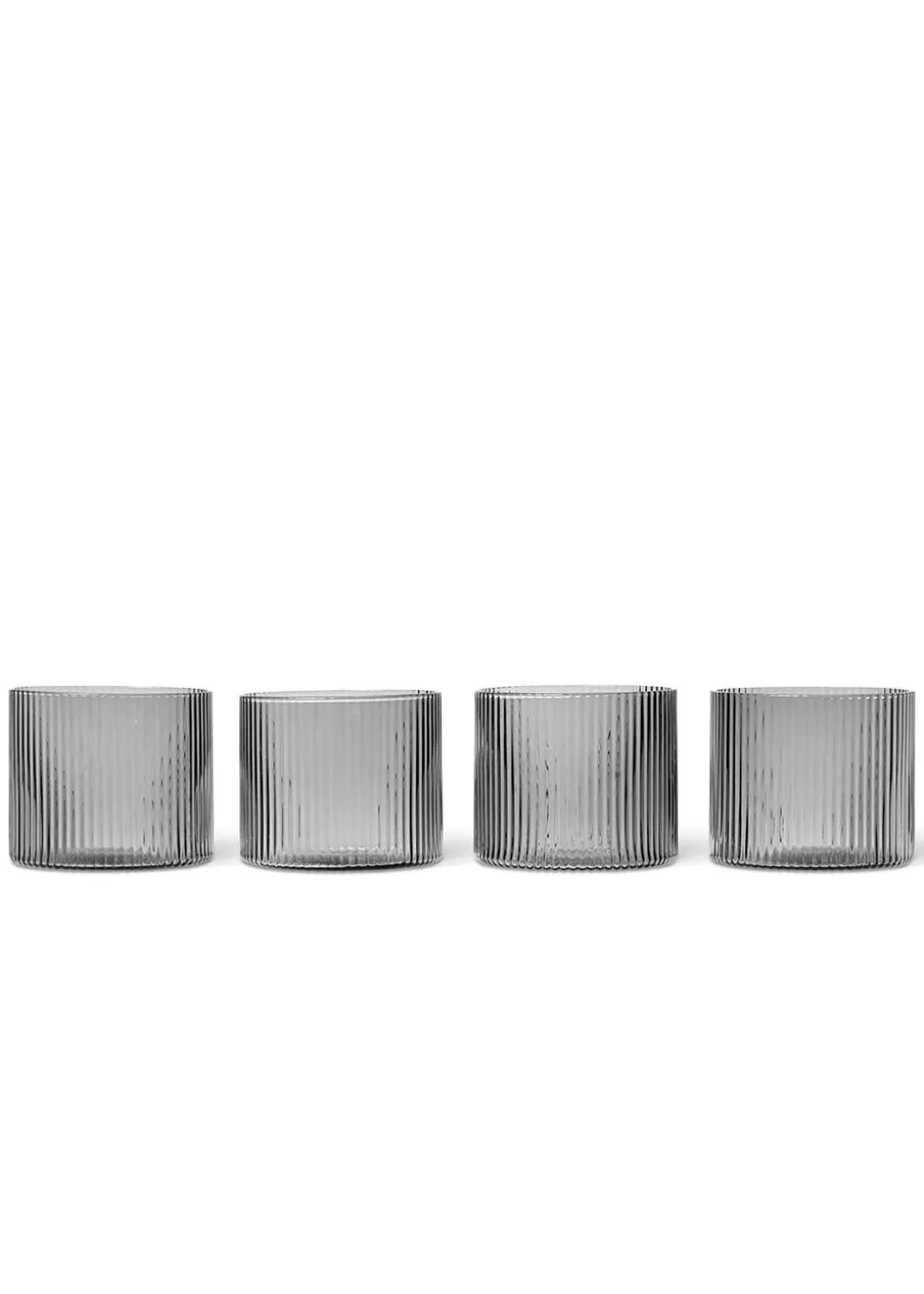 Die Serie Ripple von zeichnet sich durch ihre elegante gerippte Oberfläche aus, die dem Glas einen raffinierten und auffälligen Look verleiht. Die niedrigen Trinkgläser sind mundgeblasen und haben eine niedrige Zylinderform, die perfekt zu den Ripple Verrines passt. Die Form der Gläser ist perfekt für Cocktails, Wiskey oder Limonade, bei denen die Farben durch das geriffelte Glas wunderschön zur Geltung kommen.