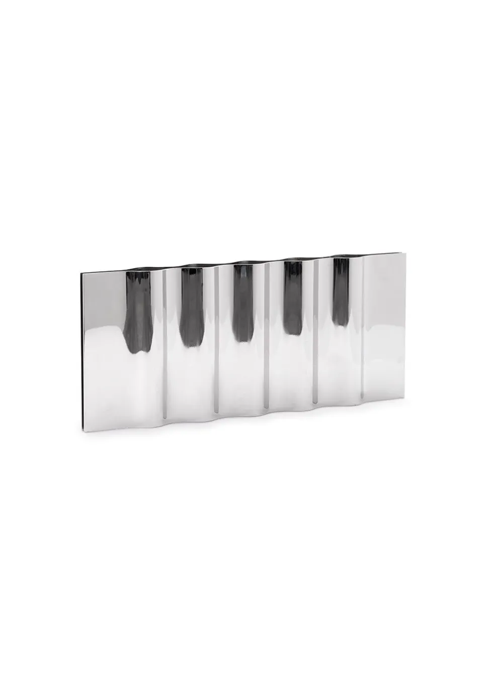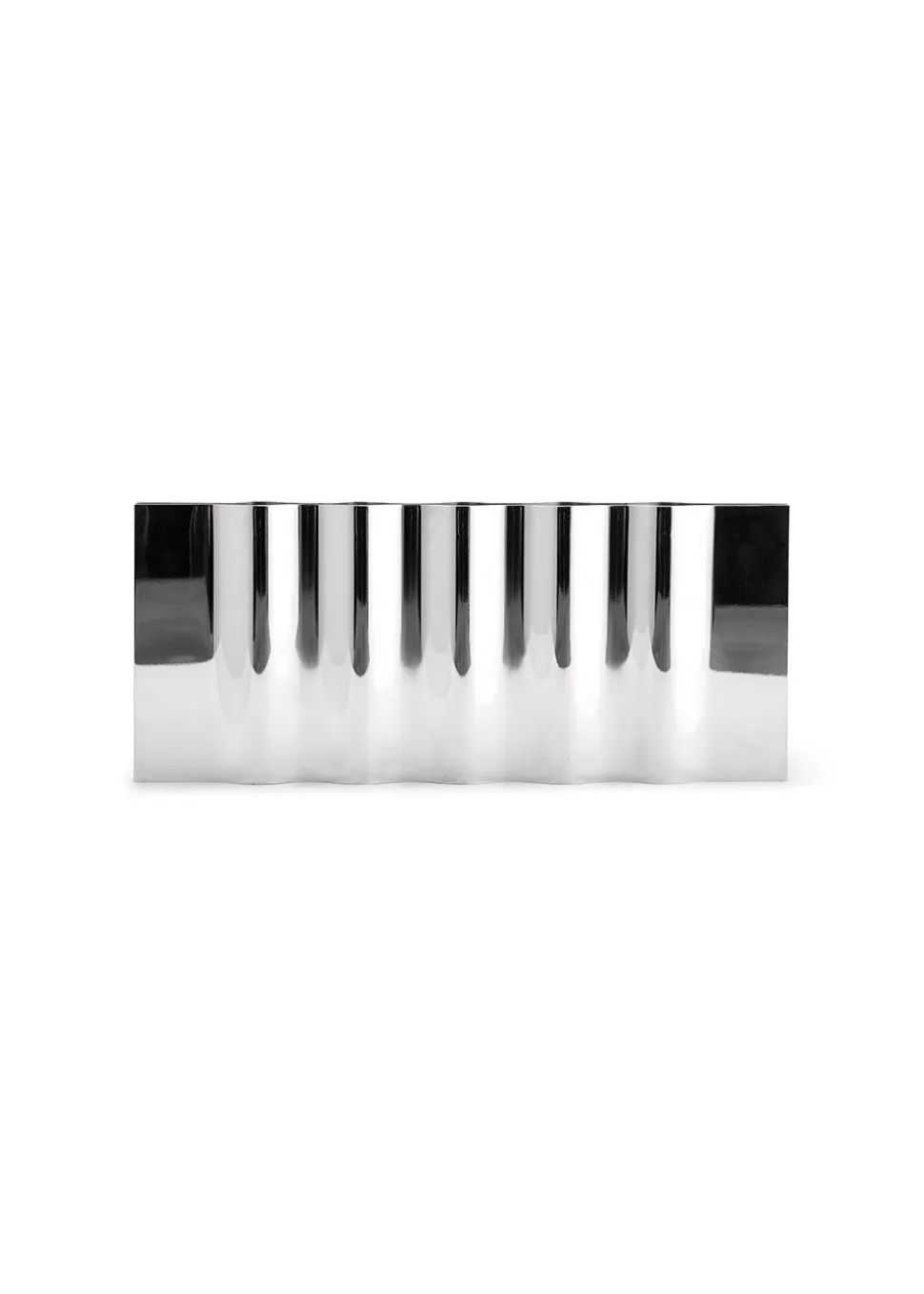 Der Ripply Candle Holder von , der 2019 vom visionären Designer Cristián Mohaded entworfen wurde, ist ein Meisterwerk aus Edelstahl. Dieser exquisite Kerzenhalter erinnert an Wellen auf einem kristallklaren See und spiegelt mit seinem wellenförmigen Äußeren anmutig seine Umgebung wider. Die sanften Kurven, die sorgfältig poliert wurden, verwandeln die Essenz des industriellen Stahls in ein ätherisches Meisterwerk. Dieses Kunstwerk ist ein skulpturales Wunderwerk, dessen Zweck verborgen bleibt, bis man ein Licht in einen der ausgedehnten Hohlräume zwischen den Stahlscheiben stellt. Ob es nun das sanfte Licht des Tages oder den warmen Schein von Kerzen reflektiert, dieses einzigartige Artefakt übt eine fast magnetische Anziehungskraft aus.
