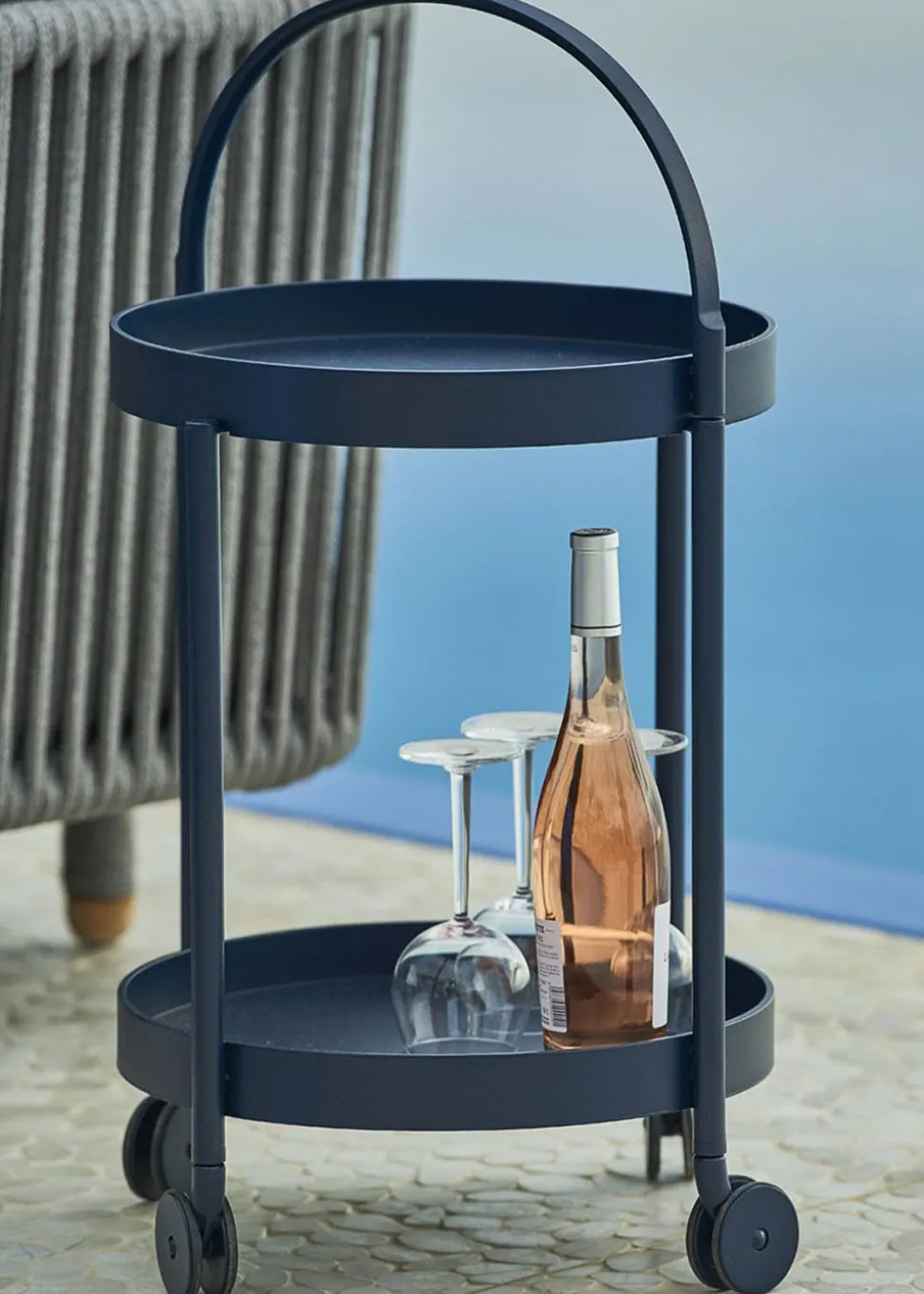 Der Rollwagen wurde von Welling/Ludvik entworfen. Der Wagen ist aus pulverbeschichtetem Aluminium gefertigt, was eine hohe Qualität und eine gute Haltbarkeit gewährleistet. Die Oberseite des Wagens ist abnehmbar und kann als Ablage verwendet werden. Der Wagen macht seinem Namen Roll mit seinen eleganten Rädern alle Ehre.