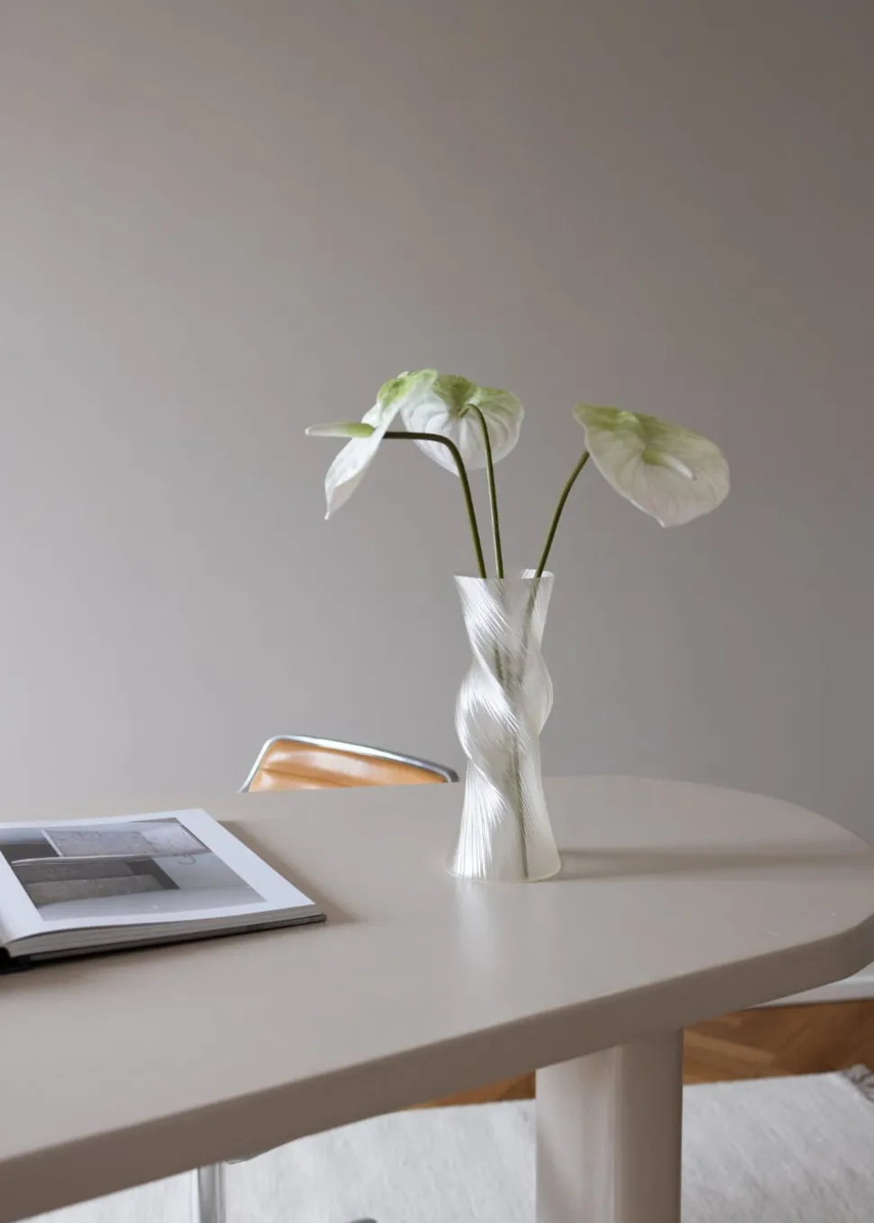 Die Rote Vase von verbindet das Innovative mit dem Natürlichen und entsteht in Zusammenarbeit zwischen Tradition und Technologie. Mit ihrer leichten und organischen Form verleiht diese Vase jedem Raum eine skulpturale Qualität. Sie wurde mit modernster 3D-Drucktechnologie hergestellt. Dieser fortschrittliche Fertigungsschritt ermöglicht die Realisierung komplexer, organischer Formen. Die aus Biokunststoff auf Mais- oder Zuckerrohrbasis hergestellte Rote Vase ist Ausdruck künstlerischer Raffinesse und Umweltbewusstsein zugleich. Ihre luftigen, eleganten Kurven und die Leichtigkeit, mit der sie sich anfühlt, wenn man sie in die Hand nimmt, verleihen der Inneneinrichtung ein Gefühl von Bewegung und Energie.