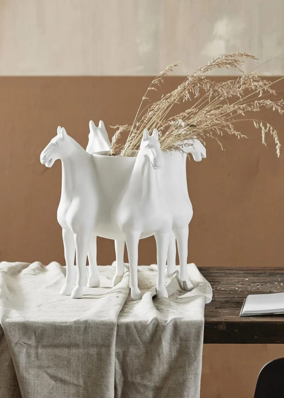 Die mit künstlerischem Flair gestaltete Vase ROXA von ist mehr als nur ein praktischer Gegenstand, sie ist eine Manifestation von Kreativität und Stil. Diese beeindruckende Vase vereint das Funktionelle mit dem Ästhetischen und verwandelt jeden Raum in ein modernes Wunderwerk. In ihrer voluminösen Form wirkt die Vase wie eine Skulptur, die aus vier Pferden besteht, die zusammen ein prächtiges Ganzes ergeben. ROXA hebt sich als einzigartiges und eigenständiges Kunstwerk ab, das jedem Interieur einen Hauch von Spannung und Persönlichkeit verleiht.