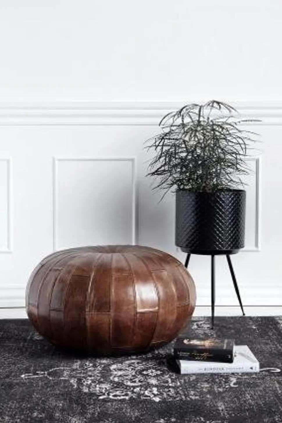 Der schöne Hocker RYGBY von ist aus Leder gefertigt. Die Lederpolsterung besteht aus schmalen Lederstücken, die dem Pouf ein originelles und schönes Aussehen verleihen. Der Hocker passt mit seinem stilvollen und einzigartigen Design perfekt in die gesamte Wohnung.