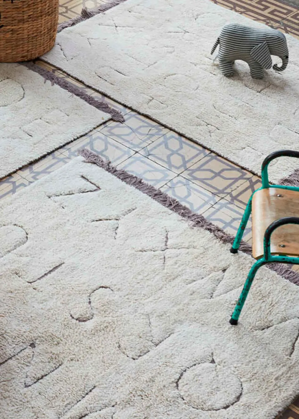 Warum nutzen Sie den Teppich nicht als interaktive Spielmatte, auf der die Kinder hüpfen, tanzen und auf den Buchstaben spielen können? Und sollte doch einmal ein kleines Missgeschick passieren, können Sie ihn einfach in der Waschmaschine waschen und er ist im Handumdrehen wieder einsatzbereit!