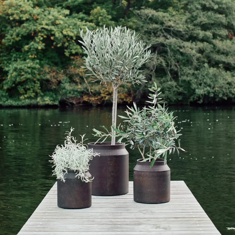 Sai Pot von Muubs ist eine einzigartige Kollektion von Töpfen für den Außenbereich, die einen rohen industriellen Ausdruck mit einer raffinierten Ästhetik verbinden. Sie werden sorgfältig aus recyceltem Eisen aus Autoschrott hergestellt, wobei die natürliche Patina des Eisens das ausrangierte Metall in ein Kunstwerk mit einer bemerkenswerten Geschichte verwandelt. Die robuste Konstruktion und die authentische Oberfläche verleihen ihnen einen zeitlosen Charme, der jeden Außenbereich aufwertet.