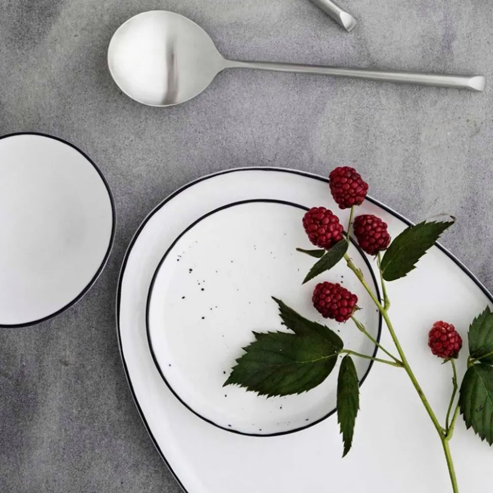 Ein einfaches, klassisches und zeitloses Design, das auch nordisch-rustikalen Minimalismus ausstrahlt. Inspiriert vom reinsten Mineralsalz hat das Set „Salt“ eine weiße Glasur mit einem dunklen, kontrastierenden Rand und Punkten, die die weißen Linien aufbrechen und ein organisches Aussehen erzeugen. Kombinieren Sie „Salt“ mit anderen Glas- und Keramikelementen auf dem gedeckten Tisch, um einen einzigartigen Look zu erzielen.