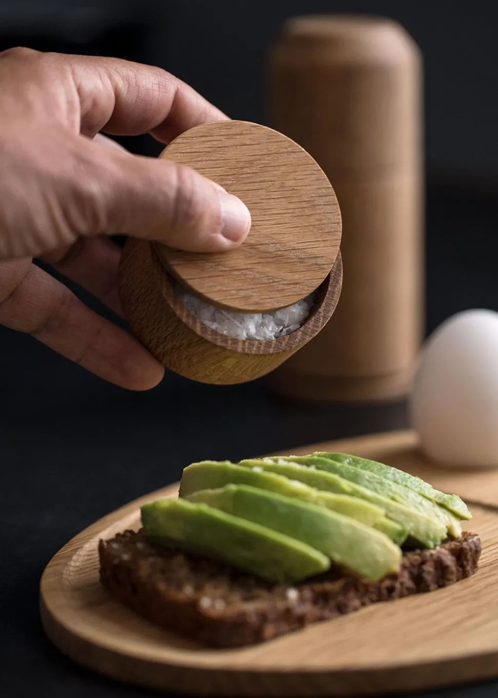 Salt Me ist ein kleiner Salzstreuer von . Der Salzkeller passt zu den Crush Me Mühlen und der Serve Me Serie. Der Deckel der Wanne dient sowohl zum Schutz des Inhalts und kann auch zur Seite geschoben werden, so dass Sie das Salz ausgießen können, ohne die Finger darin zu stecken.