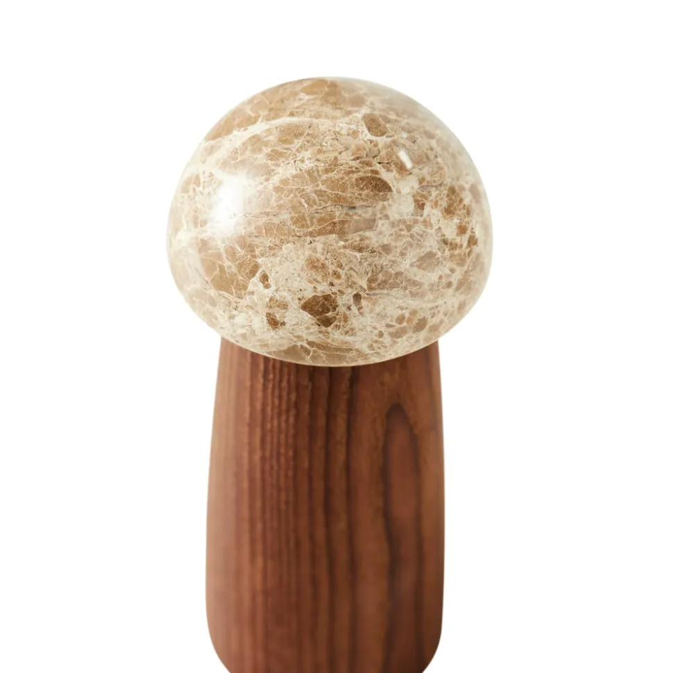 Die Salz- und Pfeffermühle besteht aus karbonisiertem Eschenholz, das dem Set die dunkle Farbe verleiht, die für die Yami-Serie typisch ist. Der helle Marmor bildet einen schönen Kontrast zum dunklen Holz und verleiht dem Design eine besondere Note.