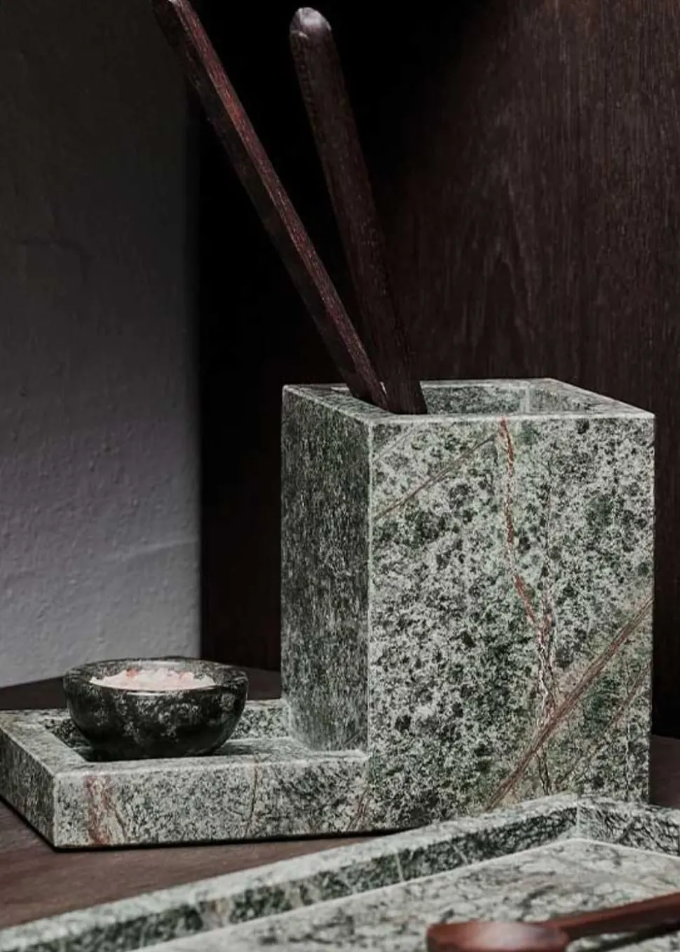 Die Vita Salzschale von Muubs ist nicht nur eine praktische Ergänzung für die Küche, sondern auch ein wahres Stück Handwerkskunst. Aus feinstem grünen Marmor gefertigt, ist jede Schale eine Hommage an die unvergleichliche Schönheit der Natur. Die wechselnden Schattierungen und Muster des Marmors verleihen jeder Schale ihren eigenen Charakter, so dass keine Schale der anderen gleicht. Das robuste und doch elegante Design der Vita-Serie bietet eine perfekte Balance zwischen zeitloser Eleganz und einem starken, natürlichen Charme, der sich in jede Küchenumgebung einfügt.