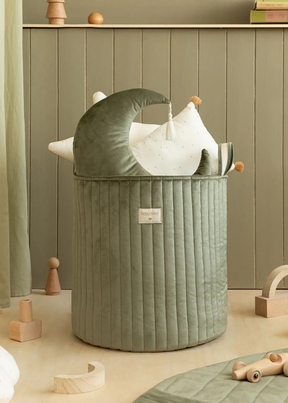 Diese vielseitige Tasche kann auch als Wäschekorb verwendet werden, was sie zu einer doppelt praktischen Ergänzung für Ihr Zuhause macht. Verwenden Sie ihn im Kinderzimmer zur Aufbewahrung von Spielzeug oder im Badezimmer für die Wäsche. Die natürlichen Materialien und das umweltfreundliche Design schaffen eine gemütliche Atmosphäre. Kombinieren Sie ihn mit anderen Nobodinoz-Produkten, um einen harmonischen und einladenden Spielbereich zu schaffen, in dem Fantasie und Ordnung Hand in Hand gehen.
